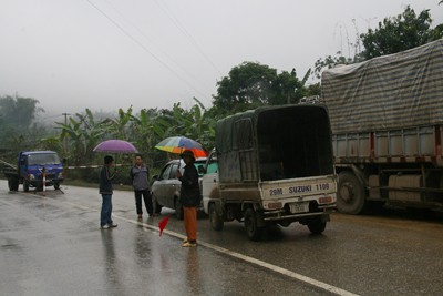 Công an tỉnh bố trí lực lượng ứng trực 24/24 giờ tại khu vực 2 đầu đoạn sạt lở để thực hiện điều tiết giao thông trong khu vực này.
