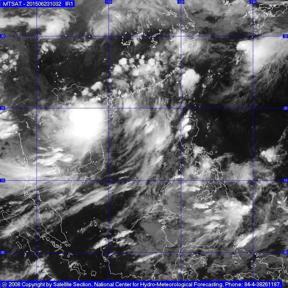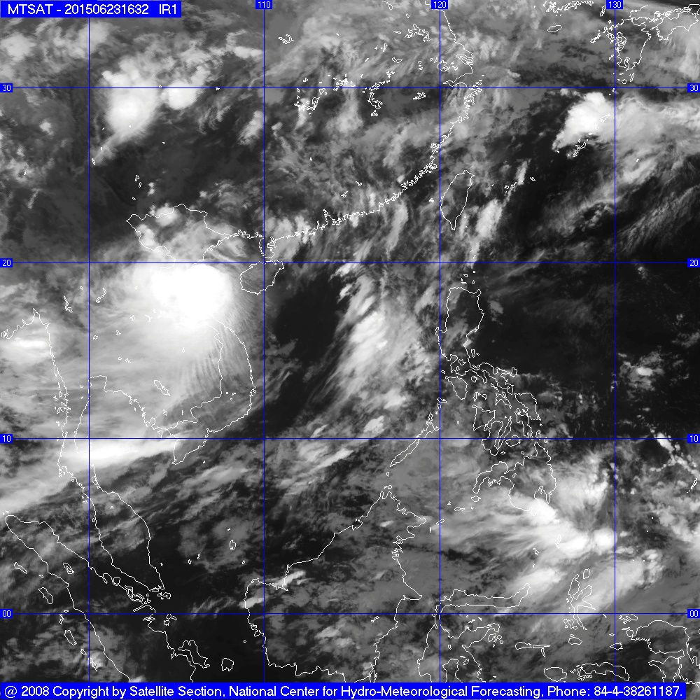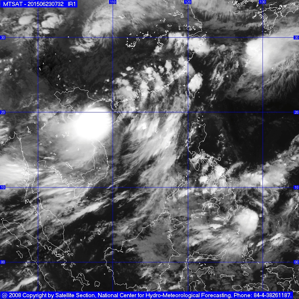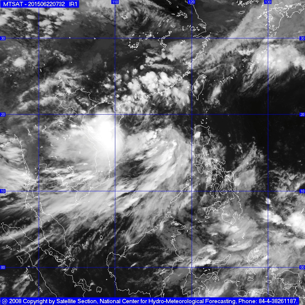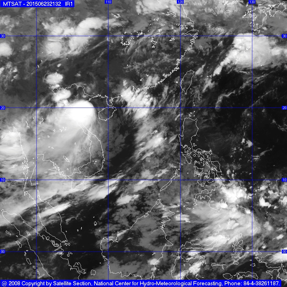 Hồi 21 giờ ngày 23/6, vị trí tâm bão ở vào khoảng 20,1 độ Vĩ Bắc;