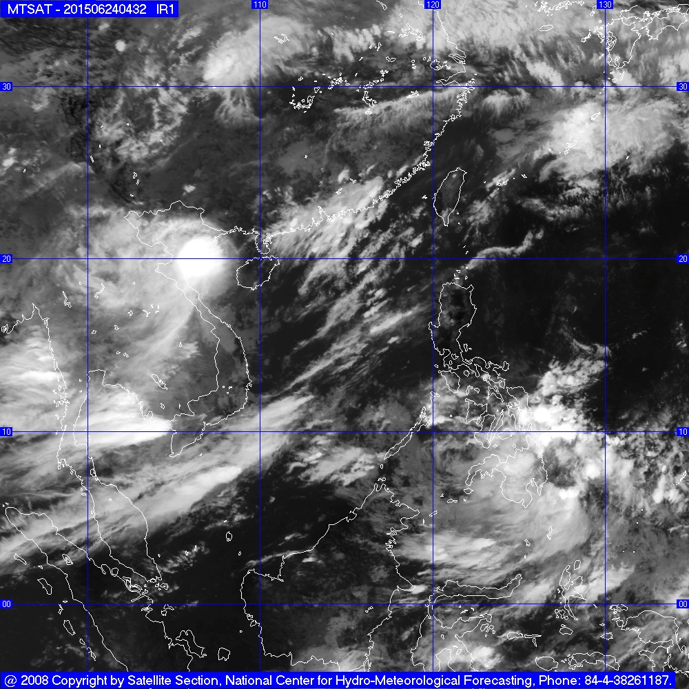 Hồi 14 giờ ngày 24/6, vị trí tâm bão ở vào khoảng 20,8 độ Vĩ Bắc;