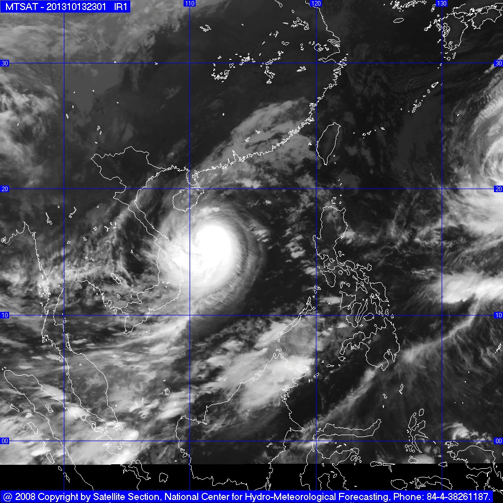 Hồi 07 giờ ngày 13/10, vị trí tâm bão ở vào khoảng 15,3 độ Vĩ Bắc; 114,7 độ Kinh Đông, cách quần đảo Hoàng Sa khoảng 300km về phía Đông Đông Nam. Sức gió mạnh nhất ở vùng gần tâm bão mạnh cấp 13 (tức là từ 134 đến 149 km một giờ), giật cấp 15, cấp 16.