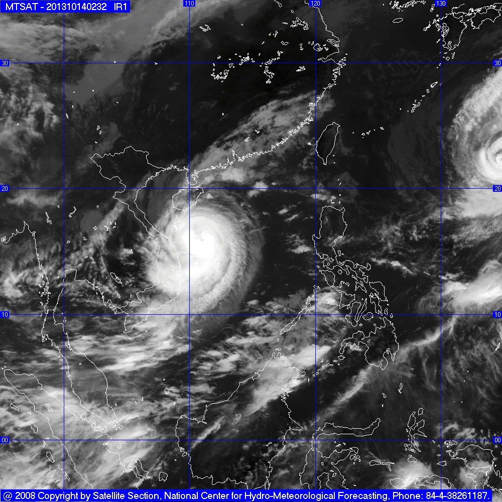 Hồi 10 giờ ngày 13/10, vị trí tâm bão ở vào khoảng 15,3 độ Vĩ Bắc; 114,2 độ Kinh Đông, cách quần đảo Hoàng Sa khoảng 260km về phía Đông Đông Nam. Sức gió mạnh nhất ở vùng gần tâm bão mạnh cấp 13 (tức là từ 134 đến 149 km một giờ), giật cấp 15, cấp 16.