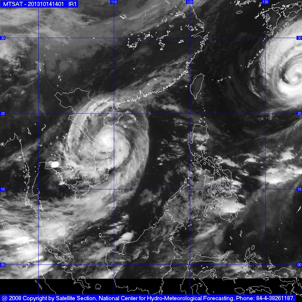 Hồi 16h ngày 14/10, vị trí tâm bão ở vào khoảng 15,9 độ Vĩ Bắc; 110,3 độ Kinh Đông, cách bờ biển các tỉnh Quảng Trị - Quảng Ngãi khoảng 200km về phía Đông. Sức gió mạnh nhất ở vùng gần tâm bão mạnh cấp 13 (tức là từ 134 đến 149 km một giờ), giật cấp 15, cấp 16.