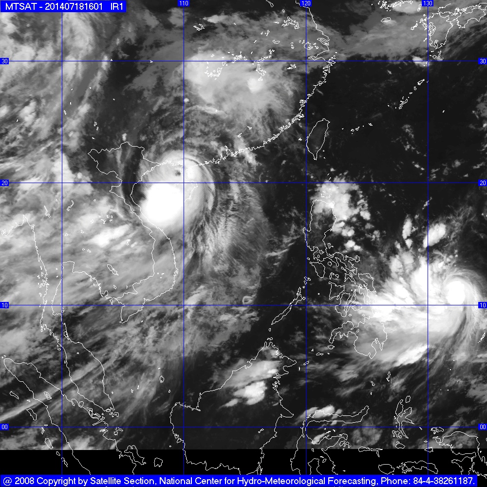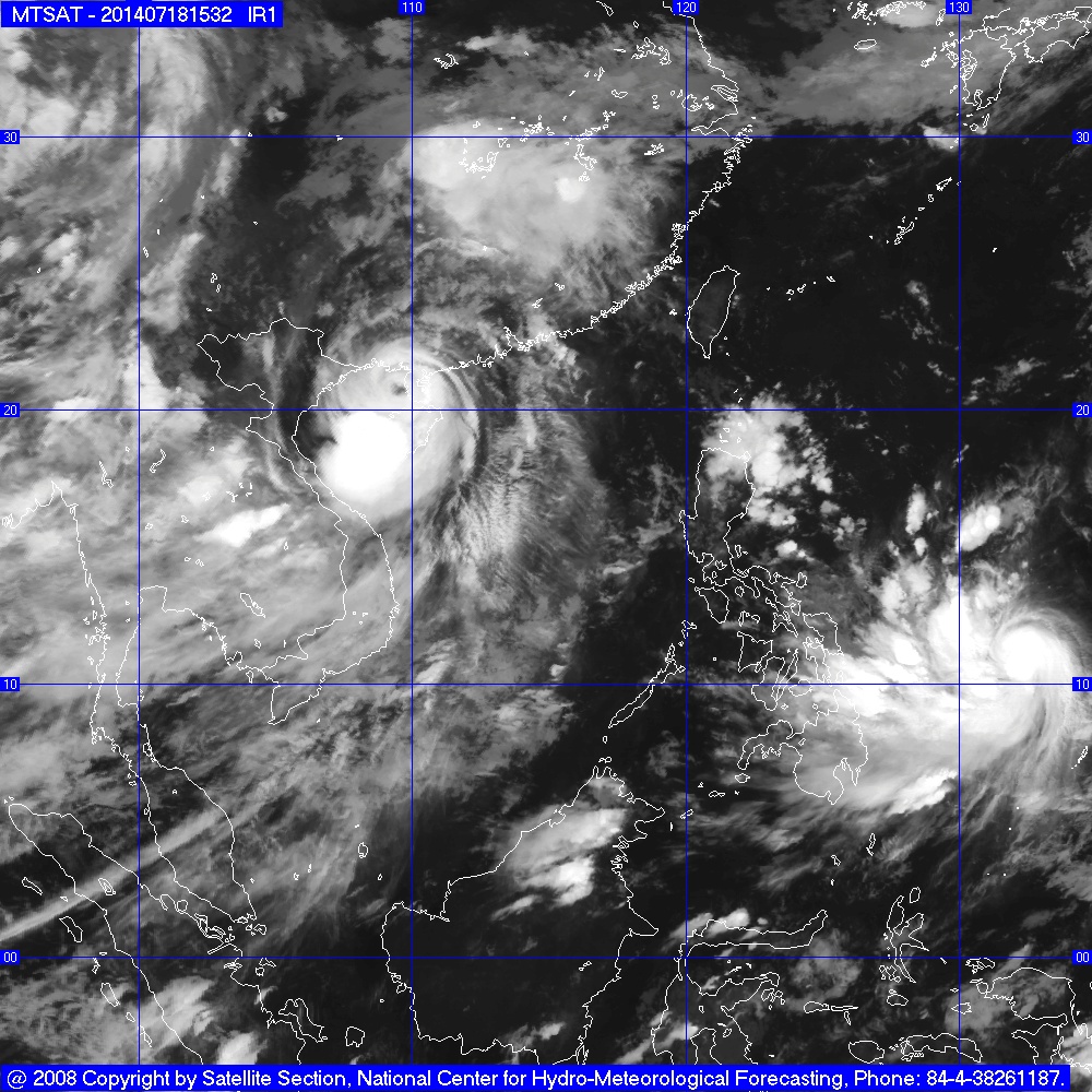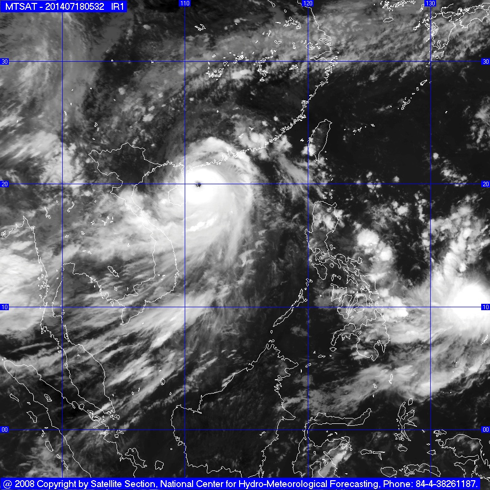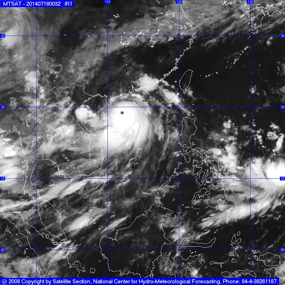 Hồi 10 giờ ngày 18/7, vị trí tâm bão ở vào khoảng 19,4 độ Vĩ Bắc; 111,9 độ Kinh Đông, cách Móng Cái (Quảng Ninh) khoảng 510km về phía Đông Nam. Sức gió mạnh nhất ở vùng gần tâm bão mạnh cấp 14, cấp 15 (tức là từ 150 đến 183 km một giờ), giật cấp 16, cấp 17.