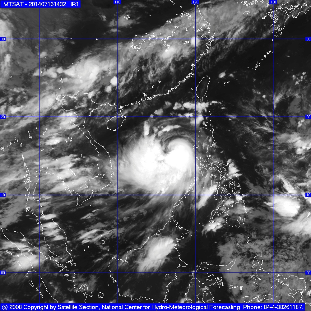 Hồi 16 giờ ngày 16/7, vị trí tâm bão ở vào khoảng 15,4 độ Vĩ Bắc; 118,5 độ Kinh Đông, cách quần đảo Hoàng Sa khoảng 710km về phía Đông Đông Nam. Sức gió mạnh nhất ở vùng gần tâm bão mạnh cấp 13 (tức là từ 134 đến 149 km một giờ), giật cấp 15, cấp 16.