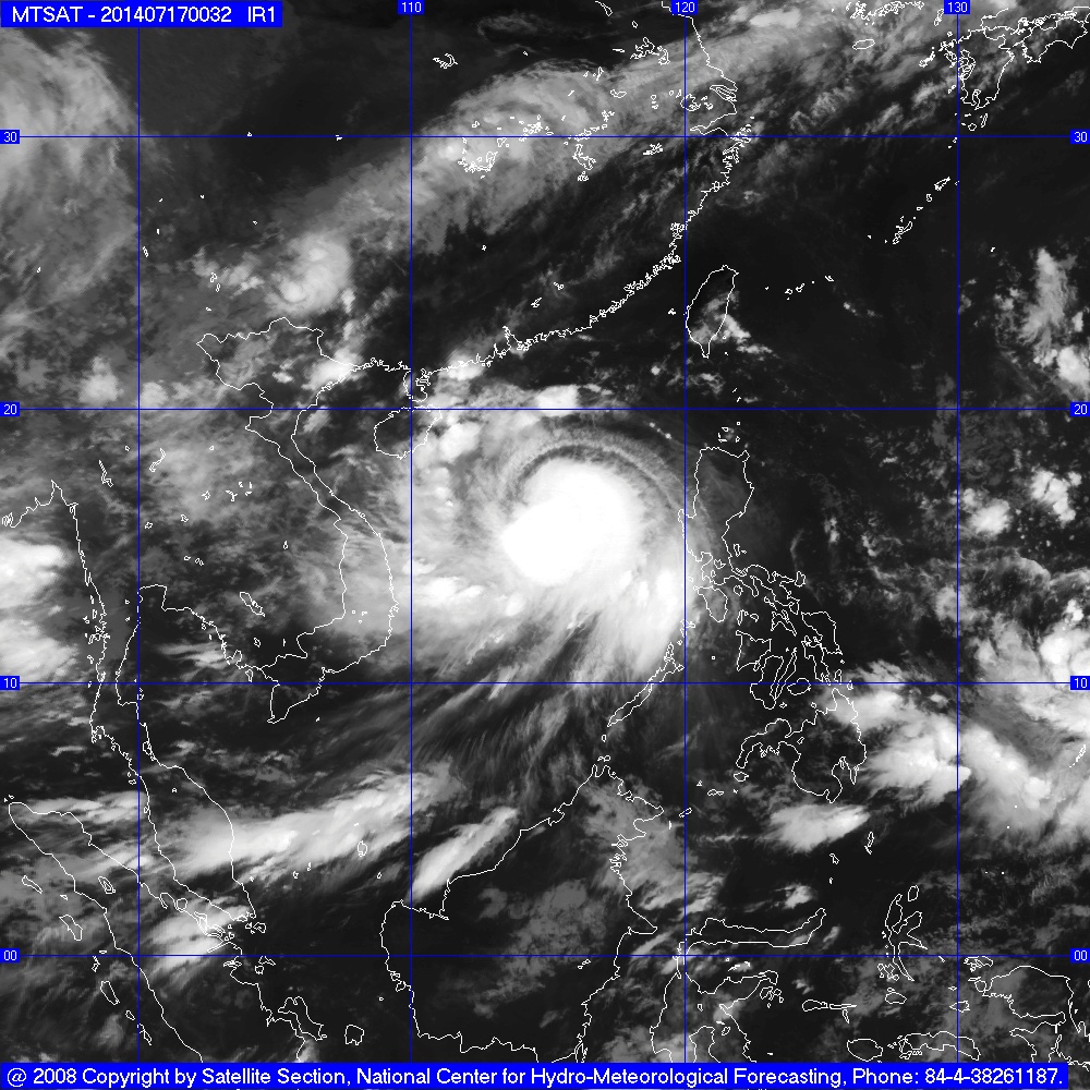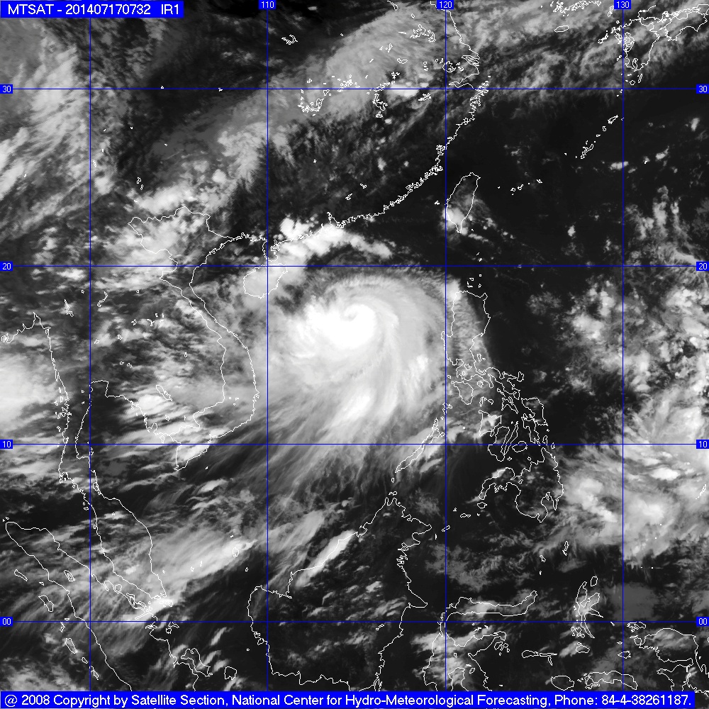 Hồi 13 giờ ngày 17/7, vị trí tâm bão ở vào khoảng 16,8 độ Vĩ Bắc; 115,0 độ Kinh Đông, cách quần đảo Hoàng Sa khoảng 300km về phía Đông. Sức gió mạnh nhất ở vùng gần tâm bão mạnh cấp 13 (tức là từ 134 đến 149 km một giờ), giật cấp 15, cấp 16.
