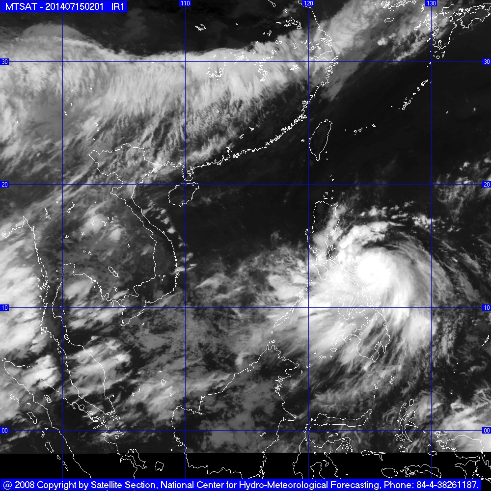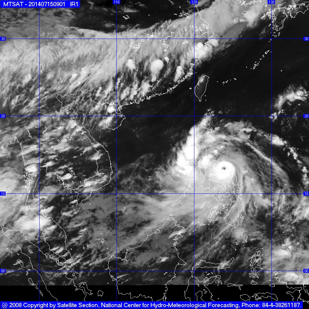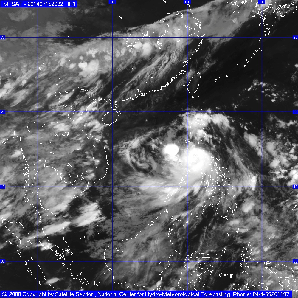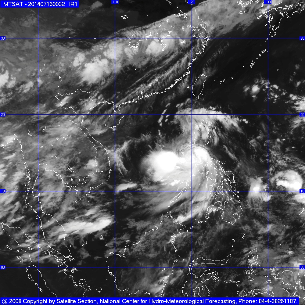Hồi 07 giờ ngày 16/7, vị trí tâm bão Rammasun ở vào khoảng 14,2 độ Vĩ Bắc; 120,5 độ Kinh Đông, trên khu vực phía Nam đảo Lu Dông (Philippin). Sức gió mạnh nhất ở vùng gần tâm bão mạnh cấp 13 (tức là từ 134 đến 149 km một giờ), giật cấp 15, cấp 16.