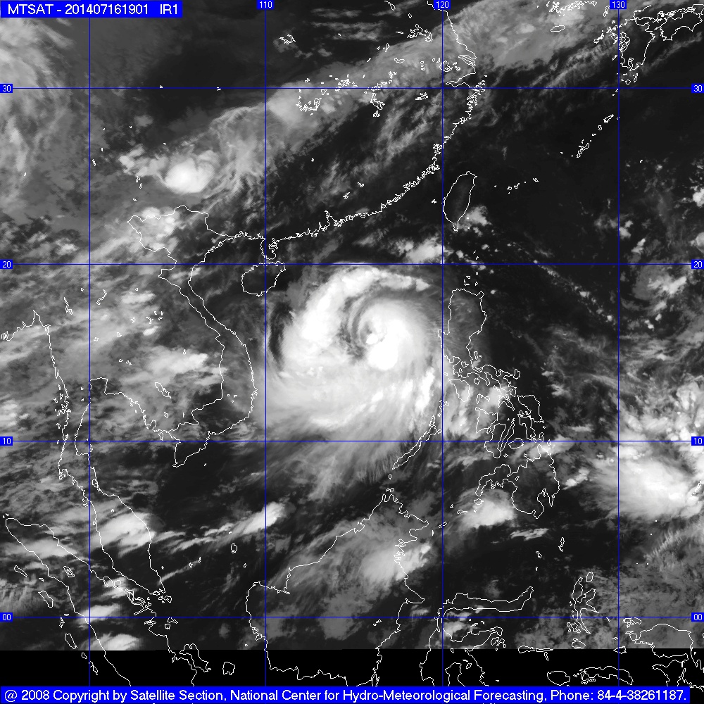 Hồi 19 giờ ngày 16/7, vị trí tâm bão ở vào khoảng 15,4 độ Vĩ Bắc; 117,8 độ Kinh Đông, cách quần đảo Hoàng Sa khoảng 620km về phía Đông Đông Nam. Sức gió mạnh nhất ở vùng gần tâm bão mạnh cấp 13 (tức là từ 134 đến 149 km một giờ), giật cấp 15, cấp 16.