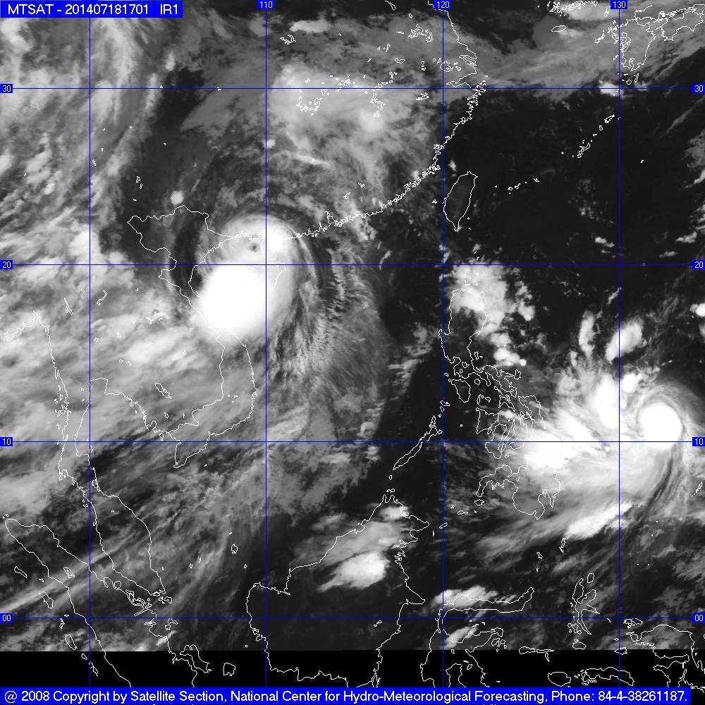 Hồi 13h ngày 18/7, vị trí tâm bão ở vào khoảng 19,9 độ Vĩ Bắc; 111,3 độ Kinh Đông, cách Móng Cái (Quảng Ninh) khoảng 420km về phía Đông Đông Nam. Sức gió mạnh nhất ở vùng gần tâm bão mạnh cấp 14, cấp 15 (tức là từ 150 đến 183 km một giờ), giật cấp 16, cấp 17.