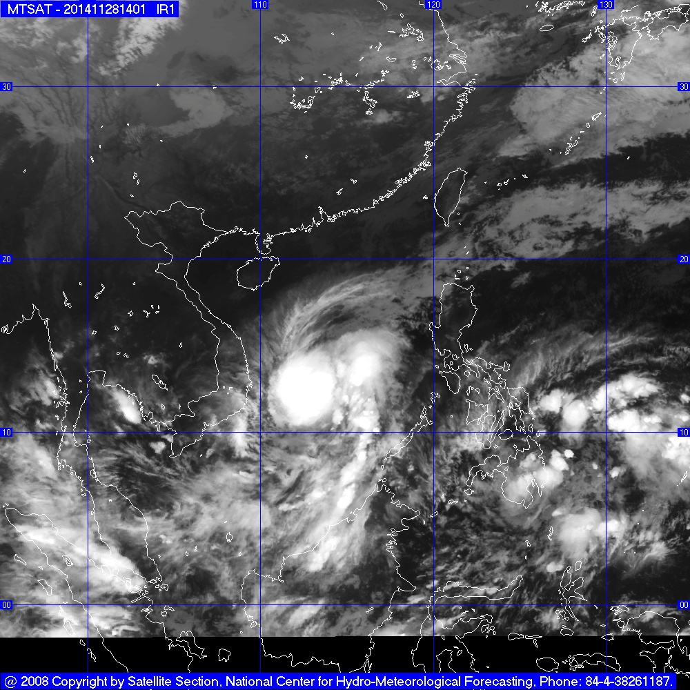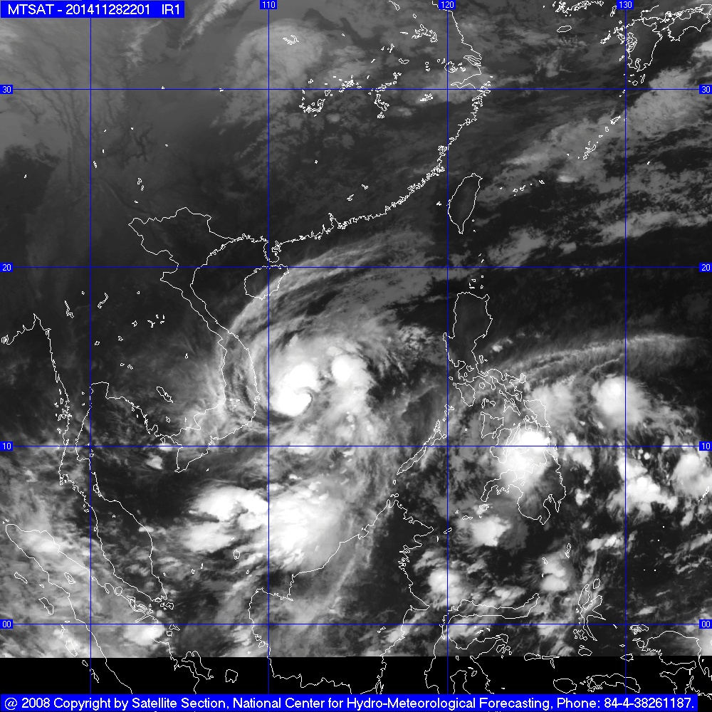 Hồi 22 giờ ngày 28/11, vị trí tâm bão ở vào khoảng 11,8 độ vĩ Bắc; 114,1 độ kinh Đông, trên khu vực phía Bắc quần đảo Trường Sa, cách bờ biển các tỉnh Bình Định – Khánh Hòa khoảng 530km về phía Đông Đông Nam. Sức gió mạnh nhất ở vùng gần tâm bão mạnh cấp 9 (tức là từ 75 đến 88km một giờ), giật cấp 10, cấp 11.