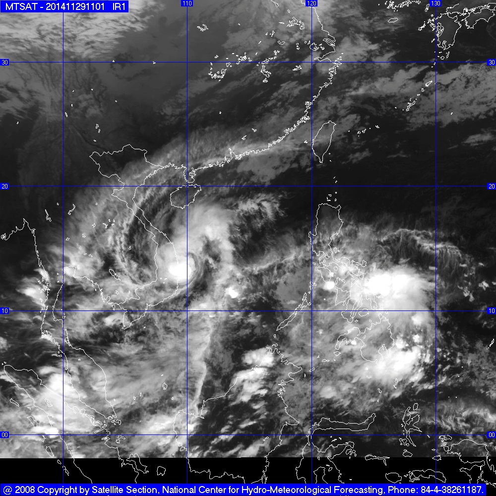 Đêm 27/11, áp thấp nhiệt đới đã đi vào vùng biển phía Đông Nam Biển Đông và sáng 28/11 đã mạnh lên thành bão, cơn bão số 4 và có tên quốc tế là Sinlaku.