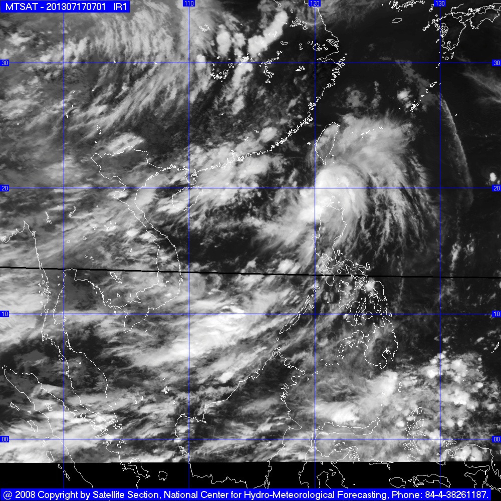 Hồi 07 giờ ngày 17/07, vị trí tâm bão ở vào khoảng 18,5 độ Vĩ Bắc; 121,6 độ Kinh Đông, trên khu vực phía Bắc đảo Lu-dông (Philippin). Sức gió mạnh nhất ở vùng gần tâm bão mạnh cấp 8 (tức là từ 62 đến 74 km một giờ), giật cấp 9, cấp 10.