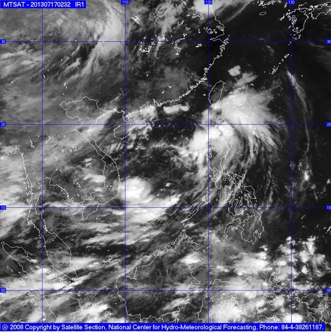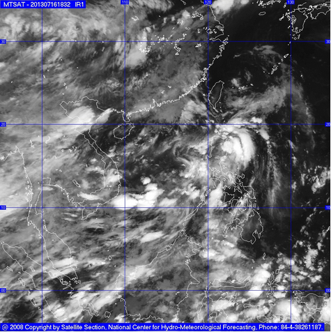 Hồi 19 giờ ngày 16/07, vị trí tâm áp thấp nhiệt đới ở vào khoảng 16,3 độ Vĩ Bắc; 123,5 độ Kinh Đông, cách đảo Lu-dông (Philippin) 160 km về phía Đông. Sức gió mạnh nhất ở vùng gần tâm áp thấp nhiệt đới mạnh cấp 6, cấp 7 (tức là từ 39 đến 61 km một giờ), giật cấp 8, cấp 9.