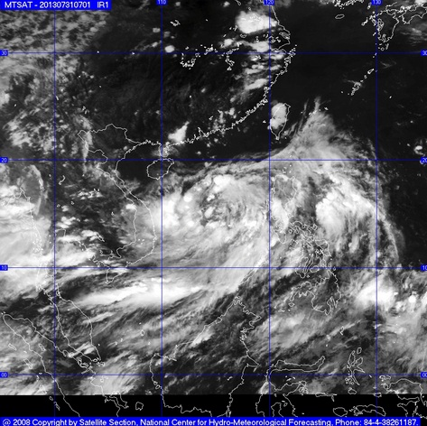 Hồi 13 giờ ngày 31/7, vị trí tâm bão ở vào khoảng 15,1 độ Vĩ Bắc; 115,4 độ Kinh Đông, cách quần đảo Hoàng Sa khoảng 400 km về phía Đông Nam. Sức gió mạnh nhất ở vùng gần tâm bão mạnh cấp 8 (tức là từ 62 đến 74 km một giờ), giật cấp 9, cấp 10.