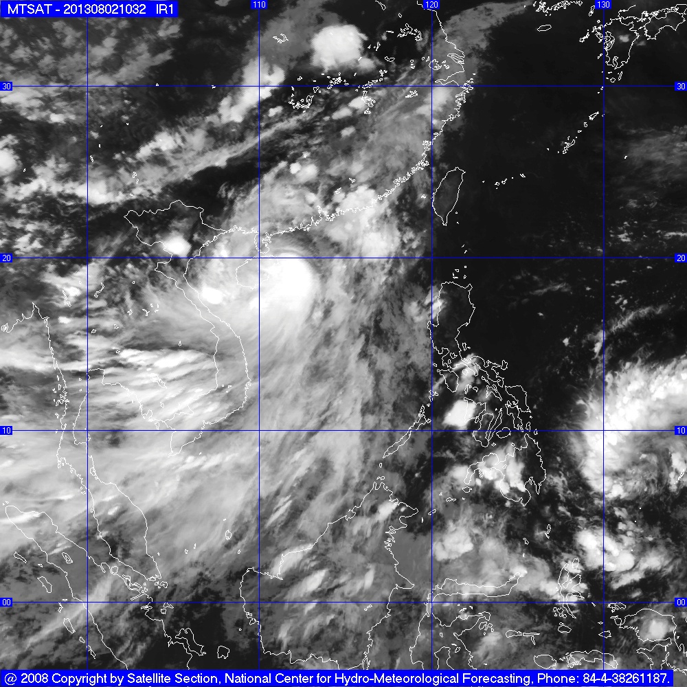 Hồi 13 giờ ngày 02/8, vị trí tâm bão ở vào khoảng 18,7 độ Vĩ Bắc; 111,8 độ Kinh Đông, cách đảo Hải Nam (Trung Quốc) khoảng 130km về phía Đông. Sức gió mạnh nhất ở vùng gần tâm bão mạnh cấp 10, cấp 11 (tức là từ 89 đến 117 km một giờ), giật cấp 12, cấp 13.