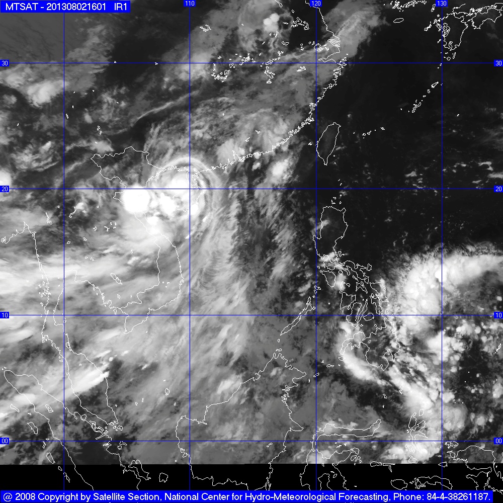 Hồi 16 giờ ngày 02/8, vị trí tâm bão ở vào khoảng 19,2 độ Vĩ Bắc; 111,2 độ Kinh Đông, trên khu vực phía Đông đảo Hải Nam (Trung Quốc), cách bờ biển Quảng Ninh – Nam Định khoảng 490km về phía Đông Đông Nam. Sức gió mạnh nhất ở vùng gần tâm bão mạnh cấp 10, cấp 11 (tức là từ 89 đến 117 km một giờ), giật cấp 12, cấp 13.