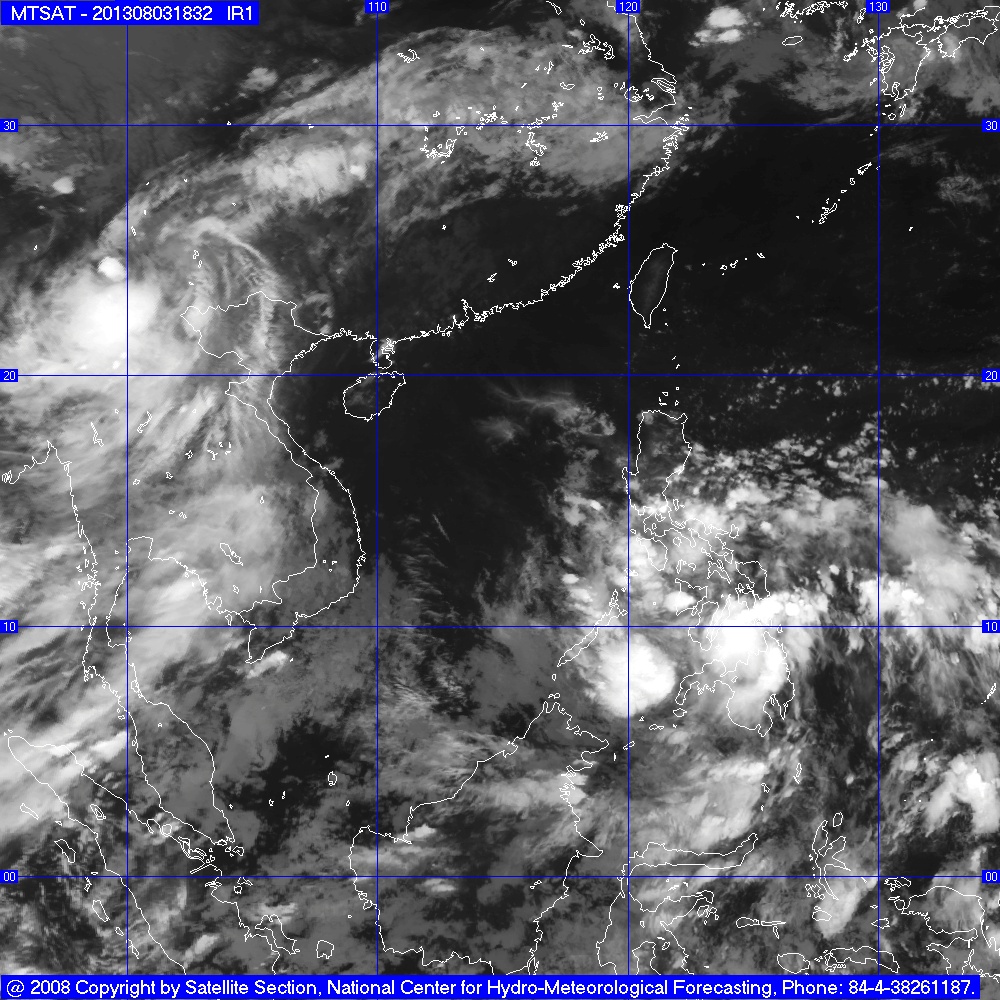 Tối nay (ngày 03/8); sau khi đi vào khu vực vùng núi Bắc Bộ, áp thấp nhiệt đới đã suy yếu thành một vùng áp thấp. Hồi 19 giờ, vị trí trung tâm vùng áp thấp ở vào khoảng 22,2 độ Vĩ Bắc; 105,0 độ Kinh Đông, trên khu vực vùng núi Bắc Bộ. Sức gió mạnh nhất ở trung tâm vùng áp thấp giảm xuống dưới cấp 6 (tức là dưới 39 km một giờ).