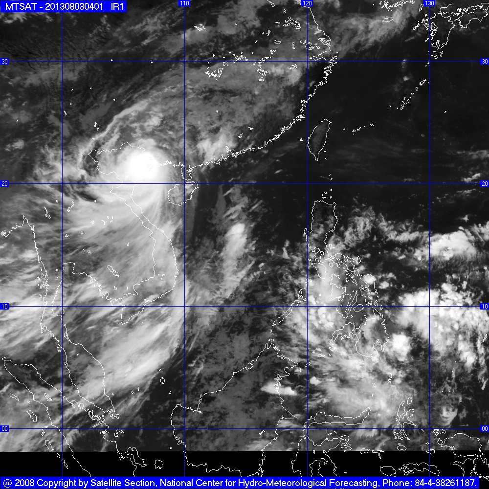 Hồi 04 giờ ngày 03/8, vị trí tâm bão ở vào khoảng 20,6 độ Vĩ Bắc; 108,7 độ Kinh Đông, cách bờ biển các tỉnh Quảng Ninh – Nam Định khoảng 180km về phía Đông Đông Nam. Sức gió mạnh nhất ở vùng gần tâm bão mạnh cấp 10, giật cấp 11, cấp 12.