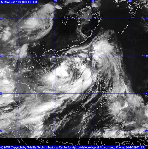 Hồi 13 giờ ngày 01/8, vị trí tâm bão ở vào khoảng 16,1 độ Vĩ Bắc; 113,4 độ Kinh Đông, trên khu vực phía Đông quần đảo Hoàng Sa. Sức gió mạnh nhất ở vùng gần tâm bão mạnh cấp 8, cấp 9 (tức là từ 62 đến 88 km một giờ), giật cấp 10, cấp 11.