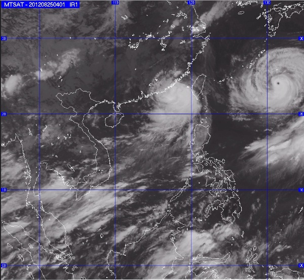 Hồi 4 giờ ngày 25/8, vị trí tâm bão ở vào khoảng 22,3 độ Vĩ Bắc; 118,8 độ Kinh Đông, trên vùng biển phía Tây Nam đảo Đài Loan (Trung Quốc). Sức gió mạnh nhất ở vùng gần tâm bão mạnh cấp 11, cấp 12 (tức là từ 103 đến 133 km một giờ), giật cấp 13, cấp 14.