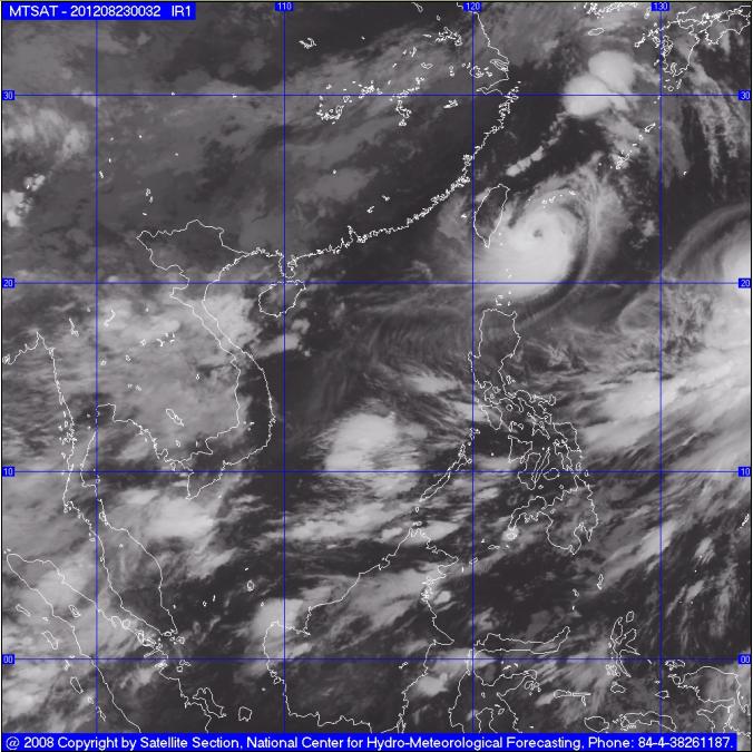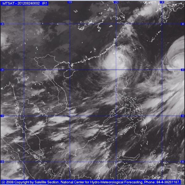 Hồi 1 giờ ngày 24/8, vị trí tâm bão ở vào khoảng 22,4 độ Vĩ Bắc; 121,4 độ Kinh Đông, trên vùng biển phía Đông Nam đảo Đài Loan (Trung Quốc). Sức gió mạnh nhất ở vùng gần tâm bão mạnh cấp 13, cấp 14 (tức là từ 134 đến 166 km một giờ), giật cấp 15, cấp 16.