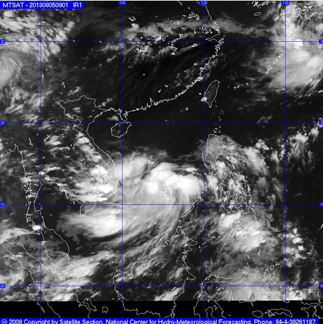 Hồi 19h ngày 05/8, vị trí tâm áp thấp nhiệt đới vào khoảng 11.9 độ vĩ Bắc; 116,0 độ Kinh Đông cách đảo Song Tử Tây (thuộc quần đảo Trường Sa) khoảng 180 km về phía Đông. Sức gió mạnh nhất ở vùng gần tâm áp thấp nhiệt đới mạnh cấp 6, cấp 7 (tức là từ 39 đến 61 km một giờ), giật cấp 8, cấp 9.
