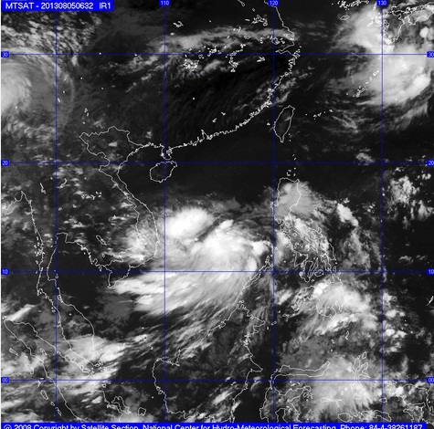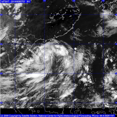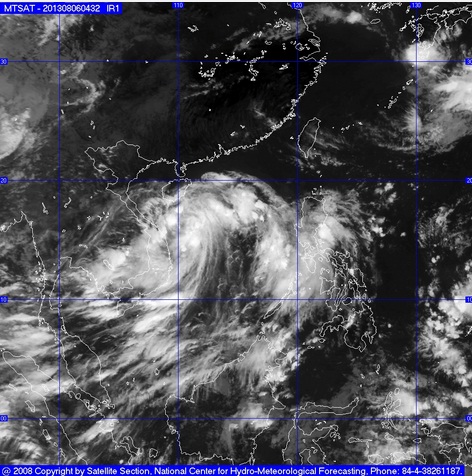 Hồi 01 giờ ngày 06/8, vị trí tâm áp thấp nhiệt đới ở vào khoảng 13,2 độ Vĩ Bắc; 114,6 độ Kinh Đông, cách quần đảo Hoàng Sa khoảng 500km về phía Đông Nam. Sức gió mạnh nhất ở vùng gần tâm áp thấp nhiệt đới mạnh cấp 6, cấp 7 (tức là từ 39 đến 61 km một giờ), giật cấp 8, cấp 9.