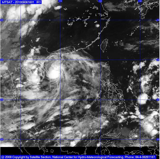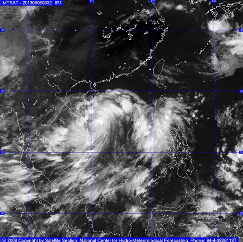 Hồi 19 giờ ngày 06/8, vị trí tâm bão ở vào khoảng 15,9 độ Vĩ Bắc; 111,0 độ Kinh Đông, trên khu vực phía Tây Nam quần đảo Hoàng Sa, cách bờ biển các tỉnh Thừa Thiên Huế - Quảng Ngãi khoảng 250km về phía Đông Đông Bắc. Sức gió mạnh nhất ở vùng gần tâm bão mạnh cấp 8 (tức là từ 62 đến 74 km một giờ), giật cấp 9, cấp 10.