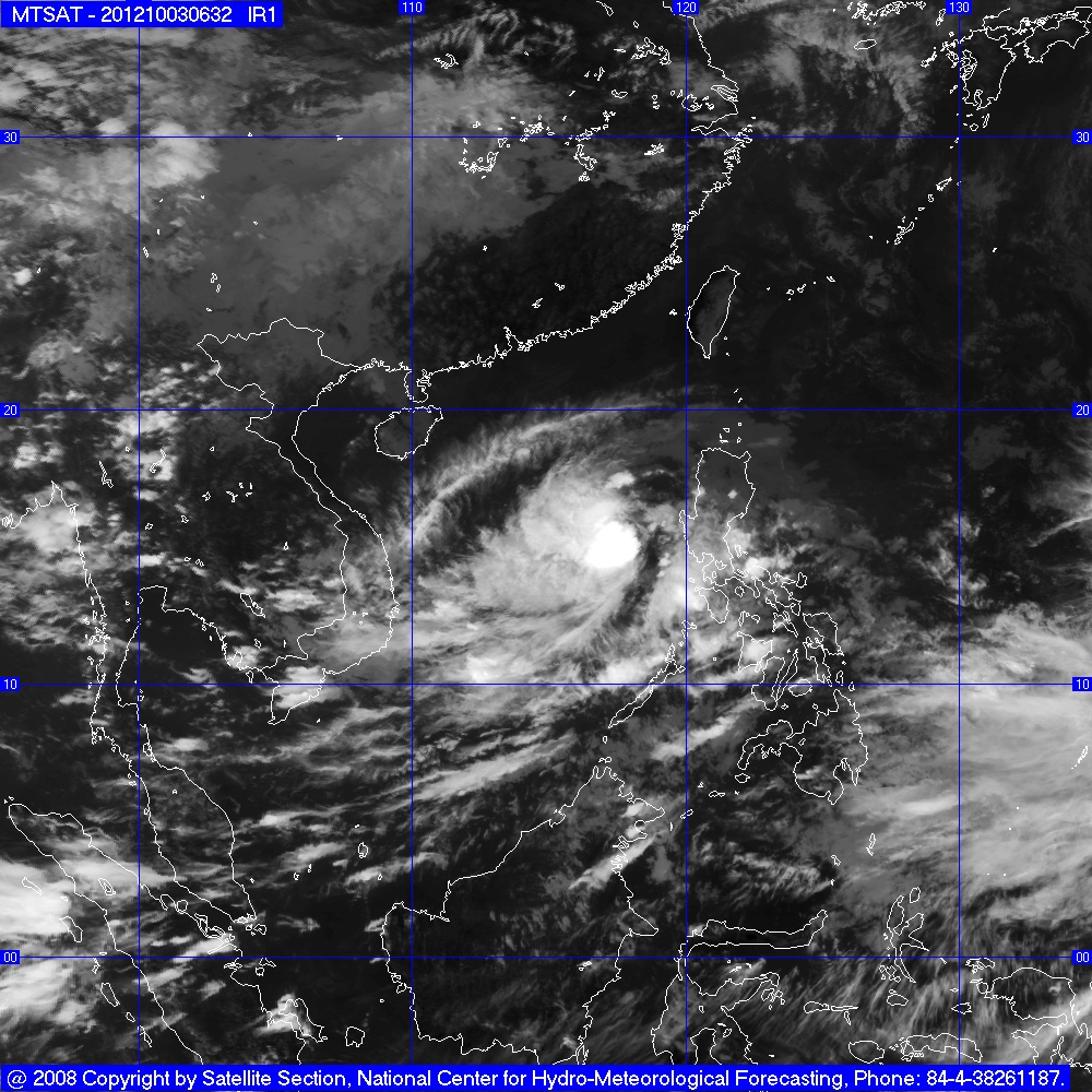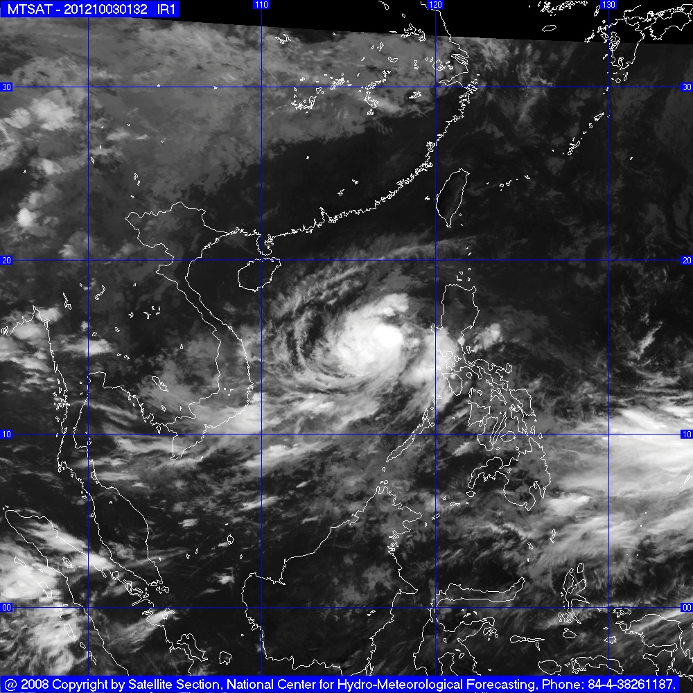 Hồi 04 giờ ngày 03/10, vị trí tâm bão ở vào khoảng 15,2 độ Vĩ Bắc; 117,2 độ Kinh Đông, cách quần đảo Hoàng Sa khoảng 560 km về phía Đông Đông Nam. Sức gió mạnh nhất ở vùng gần tâm bão mạnh cấp 8, cấp 9 (tức là từ 62 đến 88 km một giờ), giật cấp 10, cấp 11.