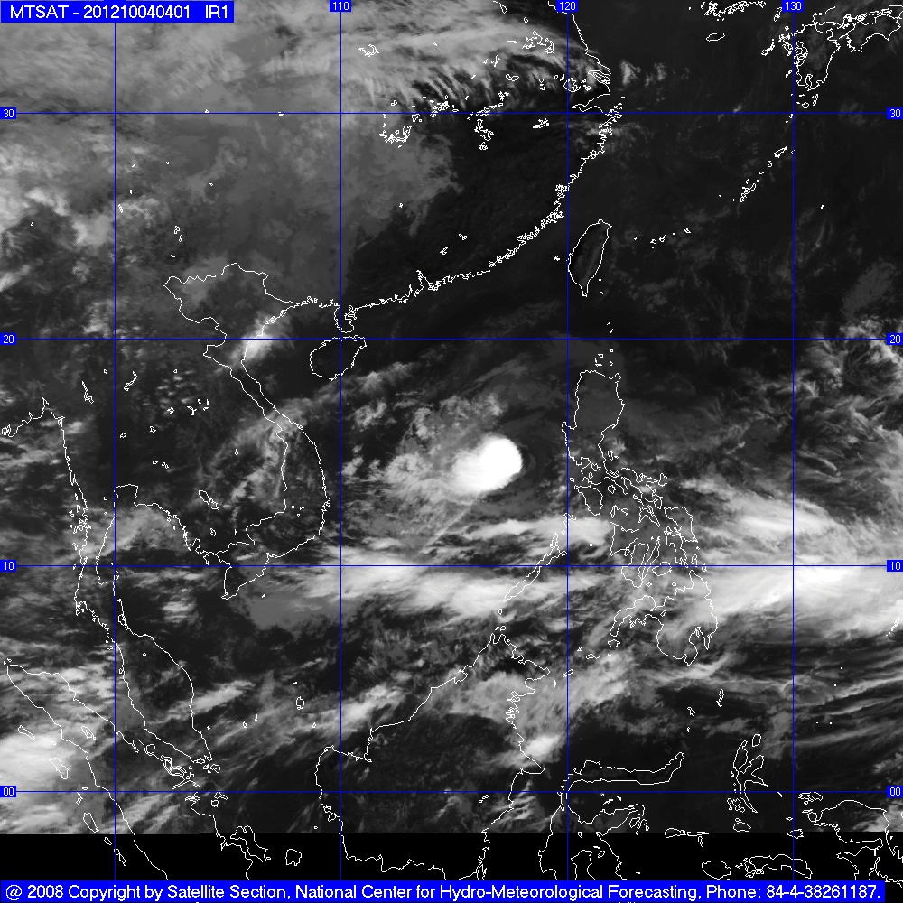 Hồi 4 giờ ngày 04/10, vị trí tâm bão ở vào khoảng 15,2 độ Vĩ Bắc; 117,3 độ Kinh Đông, cách quần đảo Hoàng Sa khoảng 580 km về phía Đông Đông Nam. Sức gió mạnh nhất ở vùng gần tâm bão mạnh cấp 10 (tức là từ 89 đến 102 km một giờ), giật cấp 11, cấp 12.