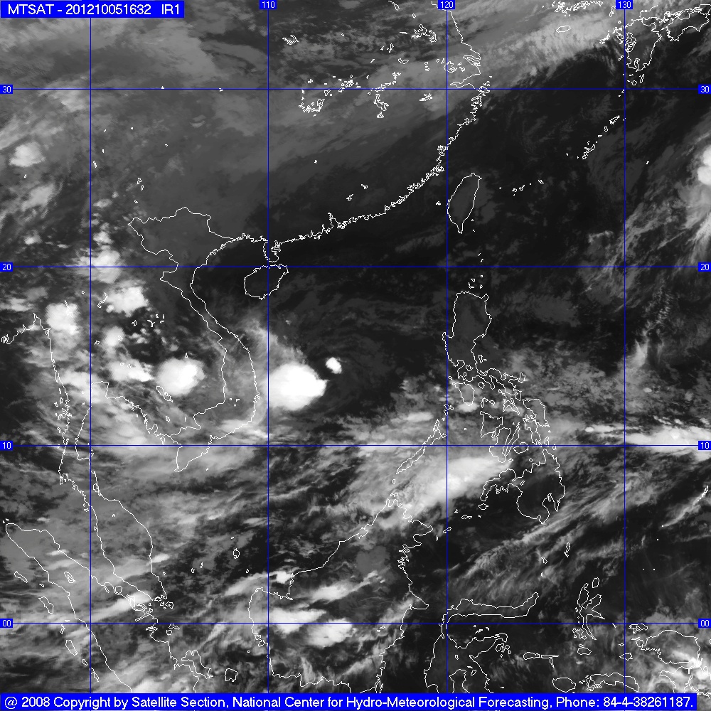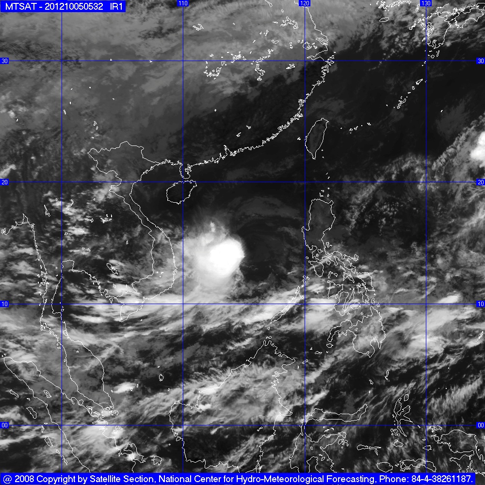 Hồi 22 giờ ngày 05/10, vị trí tâm bão ở vào khoảng 14,2 độ Vĩ Bắc; 113,9 độ Kinh Đông, cách bờ biển các tỉnh Quãng Ngãi – Phú Yên khoảng 510 km về phía Đông. Sức gió mạnh nhất ở vùng gần tâm bão mạnh cấp 8 (tức là từ 62 đến 74 km một giờ), giật cấp 9, cấp 10.