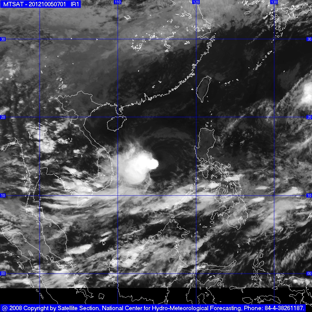Hồi 07 giờ ngày 05/10, vị trí tâm bão ở vào khoảng 14,5 độ Vĩ Bắc; 116,6 độ Kinh Đông, cách bờ biển các tỉnh Quãng Ngãi – Phú Yên khoảng 800 km về phía Đông. Sức gió mạnh nhất ở vùng gần tâm bão mạnh cấp 8, cấp 9 (tức là từ 62 đến 88 km một giờ), giật cấp 10, cấp 11.