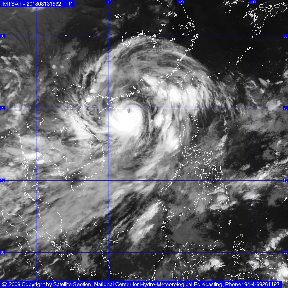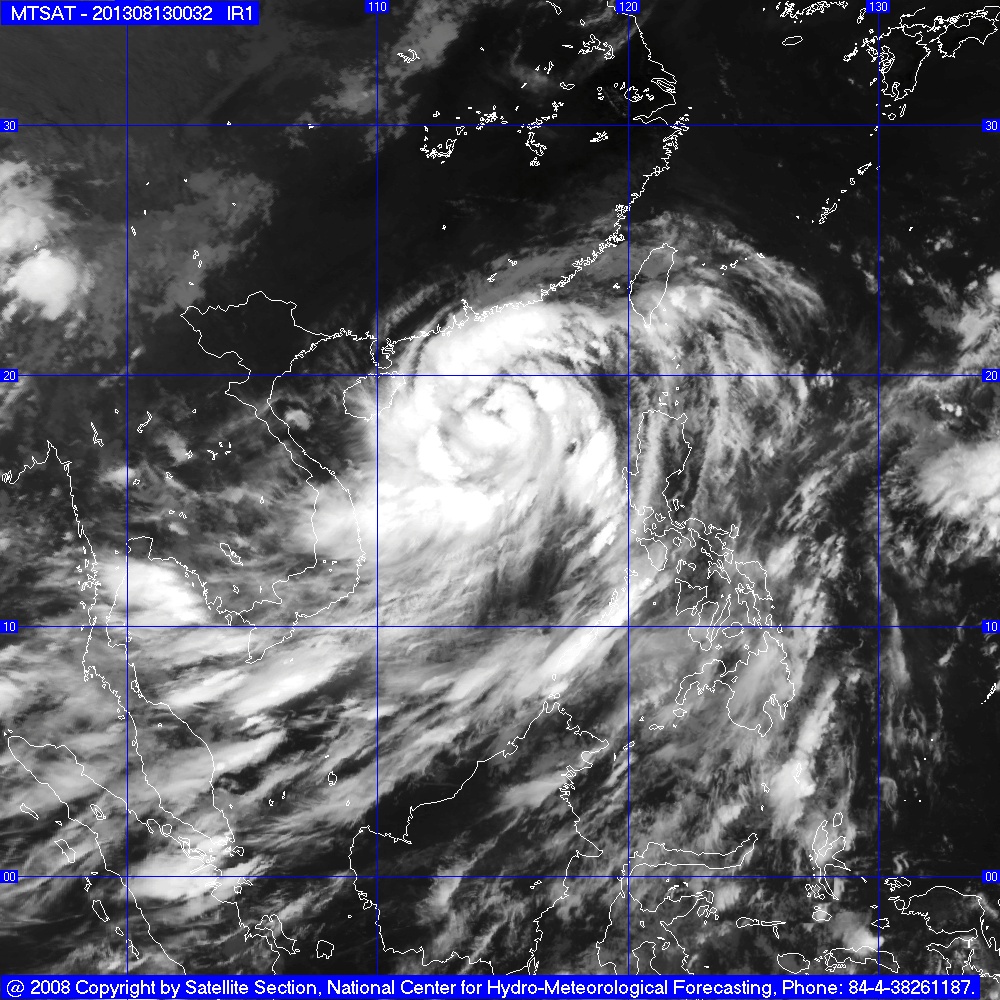Hồi 01 giờ ngày 13/8, vị trí tâm bão ở vào khoảng 18,2 độ Vĩ Bắc; 116,8 độ Kinh Đông. Cách quần đảo Hoàng Sa khoảng 530 km về phía Đông Đông Bắc. Sức gió mạnh nhất ở vùng gần tâm bão mạnh cấp 13, giật cấp 15, cấp 16.