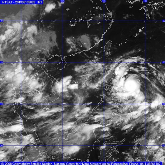 Hồi 19 giờ ngày 10/8, vị trí tâm bão ở vào khoảng 14,0 độ Vĩ Bắc; 128,2 độ Kinh Đông, cách đảo Lu – Dông (Philippin) khoảng 770km về phía Đông Nam. Sức gió mạnh nhất ở vùng gần tâm bão mạnh cấp 13 (tức là từ 134 đến 149km một giờ), giật cấp 15, cấp 16.