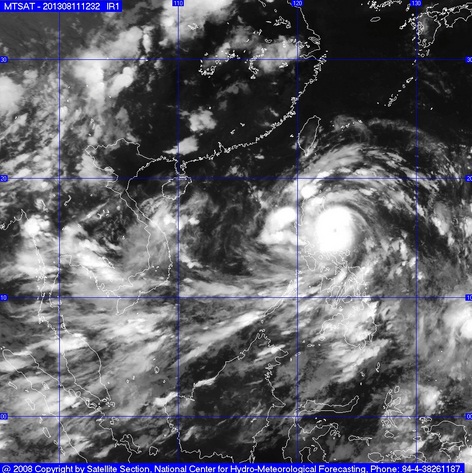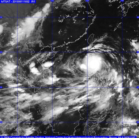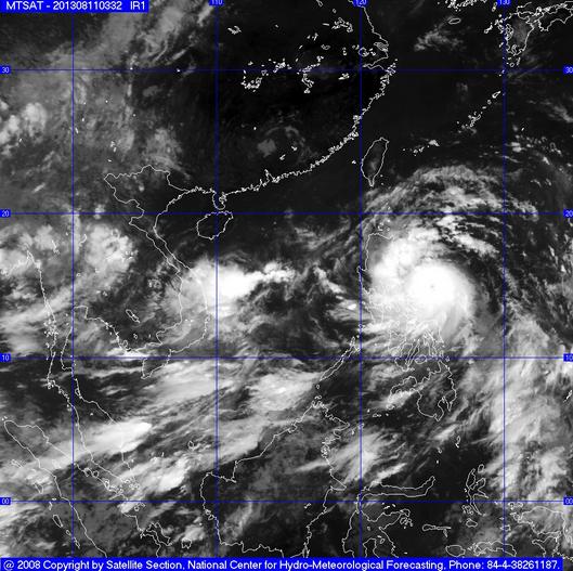 Hồi 13 giờ ngày 11/8, vị trí tâm bão ở vào khoảng 15,1 độ Vĩ Bắc; 124,8 độ Kinh Đông, cách đảo Lu – Dông (Philippin) khoảng 350km về phía Đông Nam. Sức gió mạnh nhất ở vùng gần tâm bão mạnh cấp 14, cấp 15 (tức là từ 150 đến 183km một giờ), giật cấp 16, cấp 17.