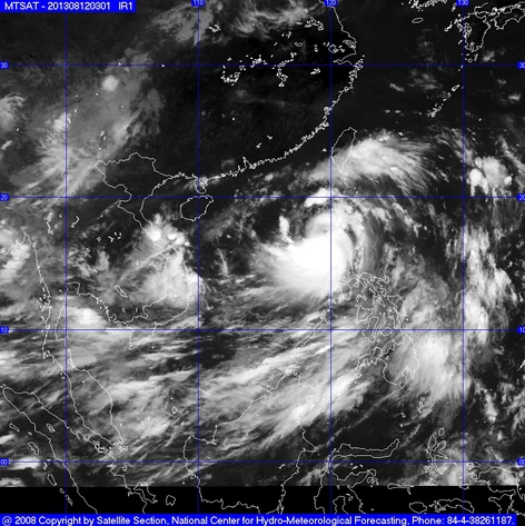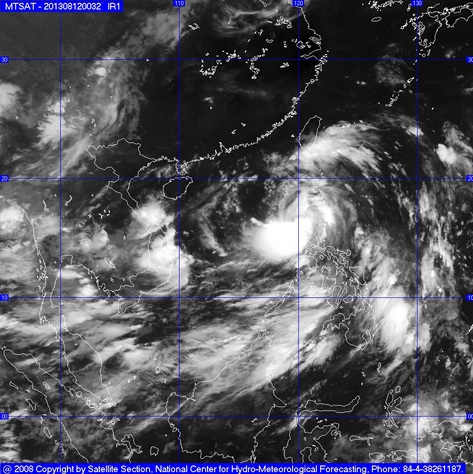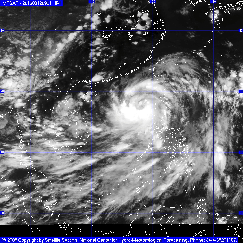 Hồi 01 giờ ngày 12/8, vị trí tâm bão ở vào khoảng 16,2 độ Vĩ Bắc; 122,2 độ Kinh Đông, trên khu vực phía Đông Nam đảo Lu – Dông (Philippin). Sức gió mạnh nhất ở vùng gần tâm bão mạnh cấp 14, cấp 15 (tức là từ 150 đến 183km một giờ), giật cấp 16, cấp 17.