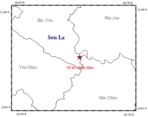 Động đất xảy ra tại gần khu vực huyện Bắc Yên, tỉnh Sơn La.