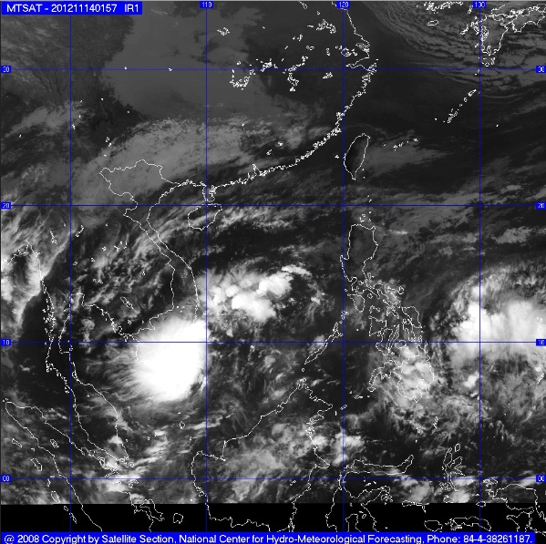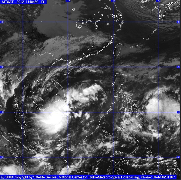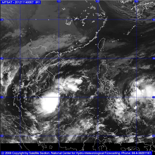 Hồi 01 giờ ngày 14/11, vị trí tâm áp thấp nhiệt đới ở vào khoảng 8,2 độ Vĩ Bắc; 111,2 độ Kinh Đông, trên khu vực quần đảo Trường Sa. Sức gió mạnh nhất ở vùng gần tâm áp thấp nhiệt đới mạnh cấp 6 (tức là từ 39 đến 49 km một giờ), giật cấp 7.