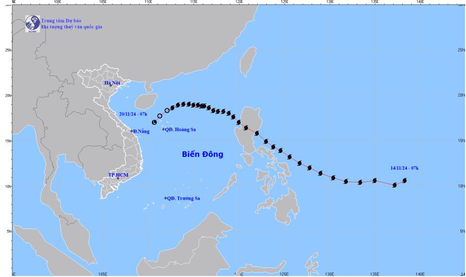 - Early morning of November 20, the tropical depression (weakened from storm No. 9) weakened into a low pressure area in the northwest sea of ​​the Hoang Sa archipelago.
