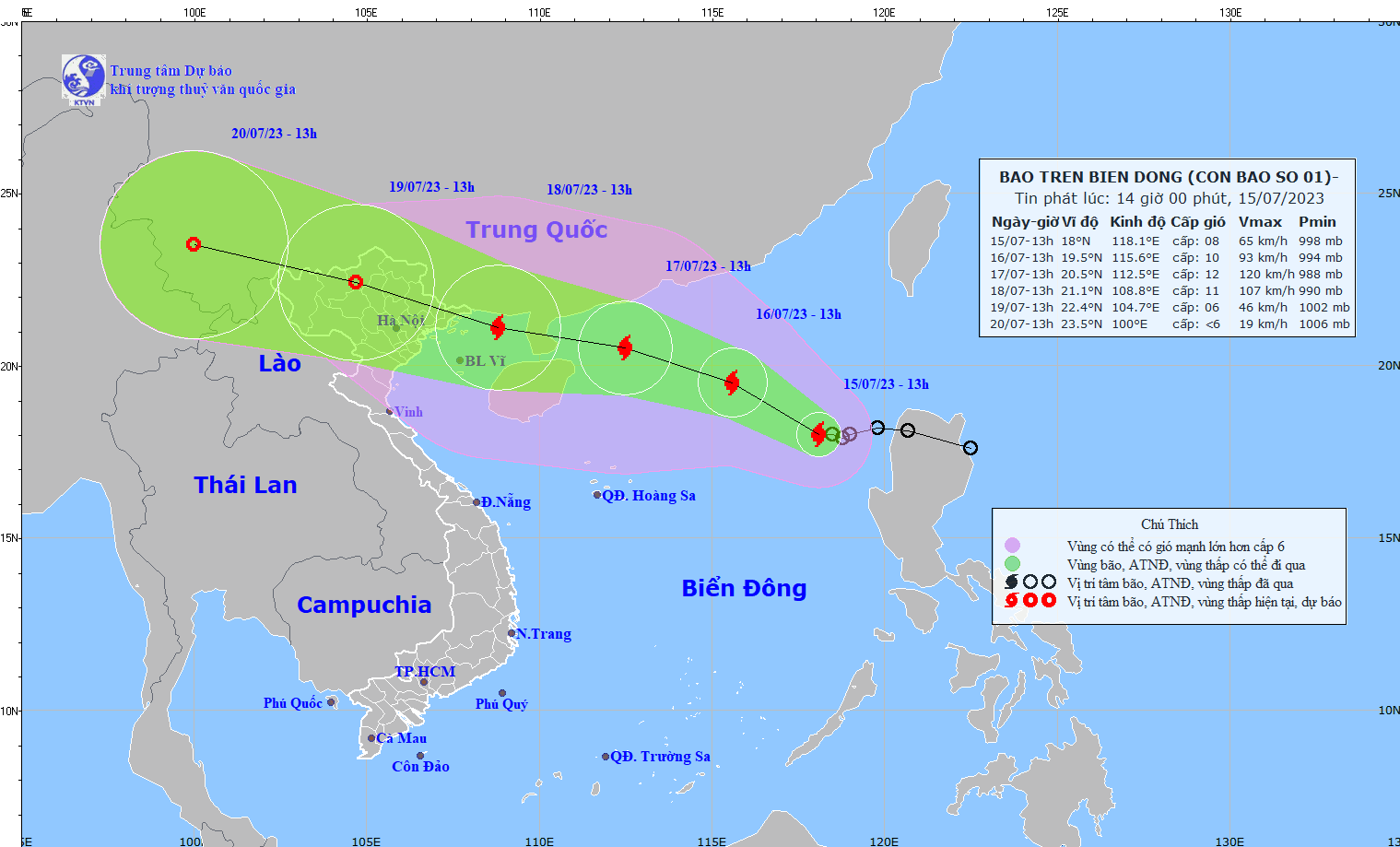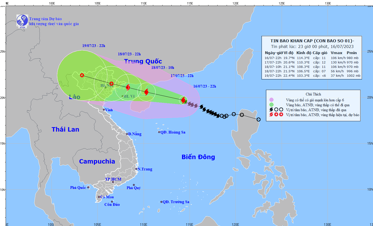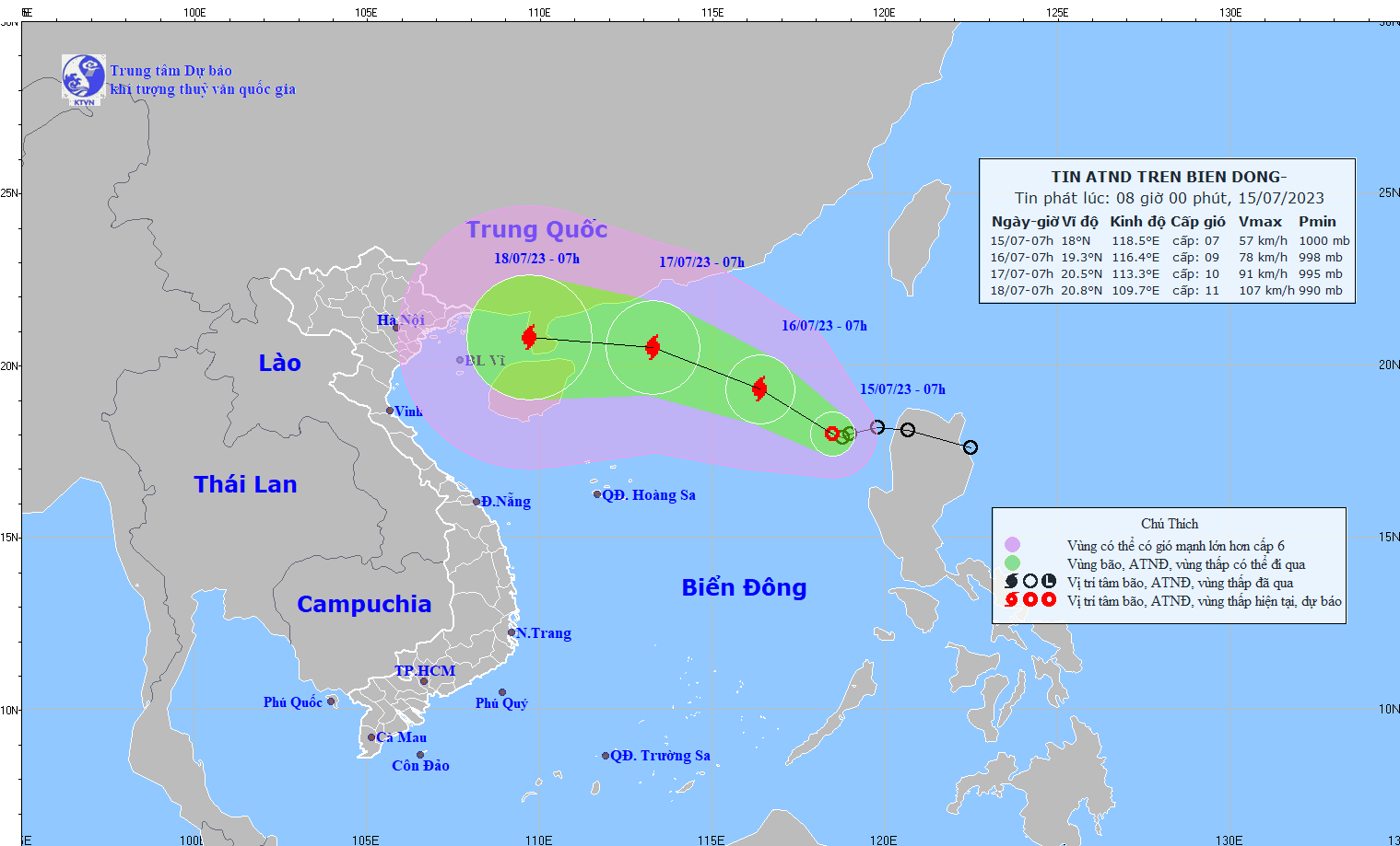 - The National Steering Committee for Disaster Prevention has issued 02 public notices (No. 05/CD-QG on July 15, 2023; No. 04/CD-QG on July 14, 2023) directing provinces, cities and other Ministries and sectors respond to storms.