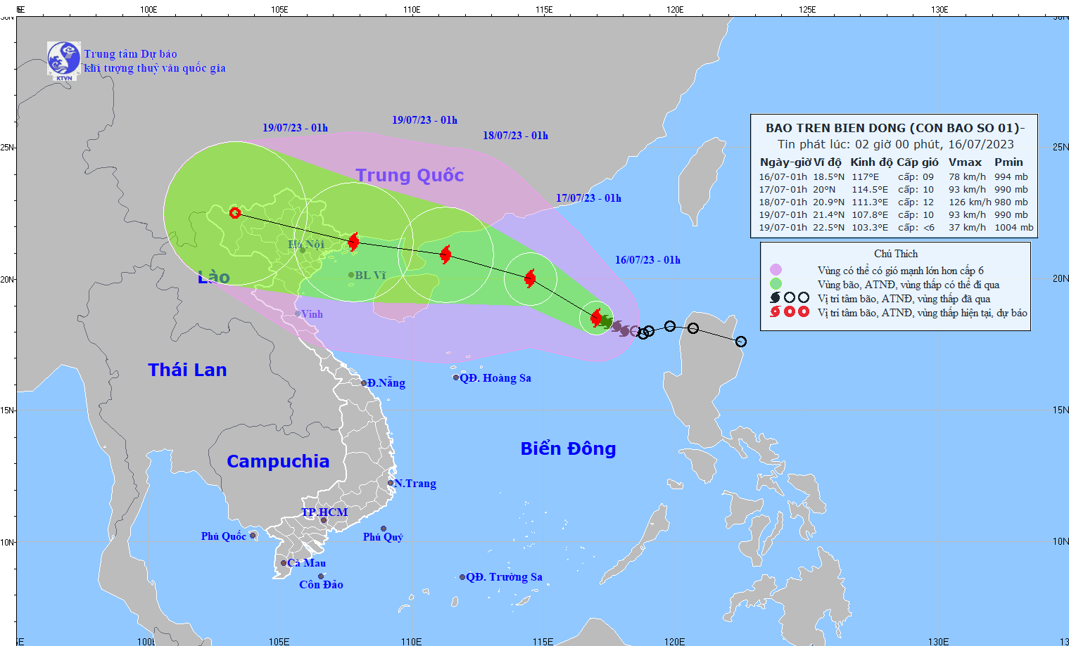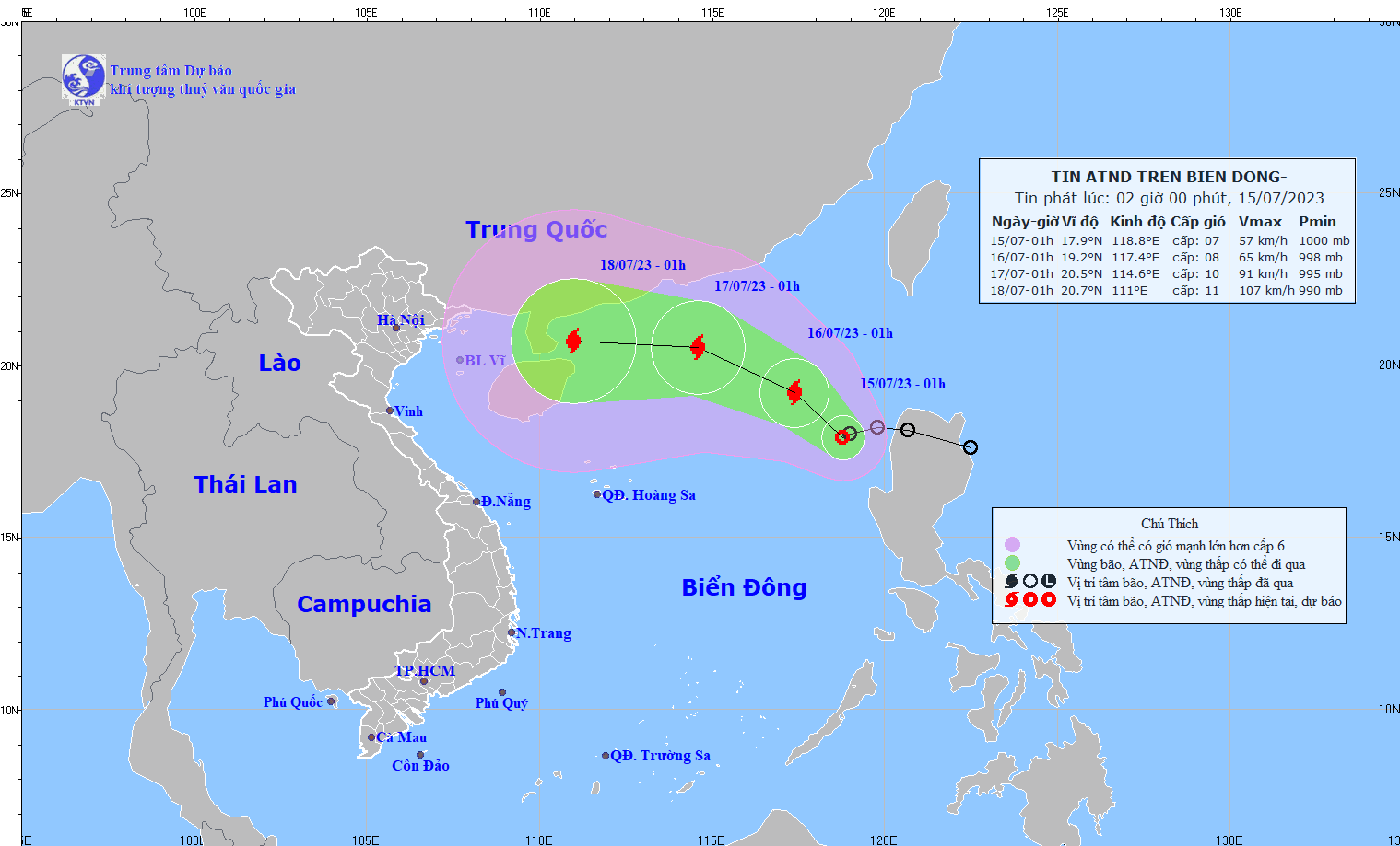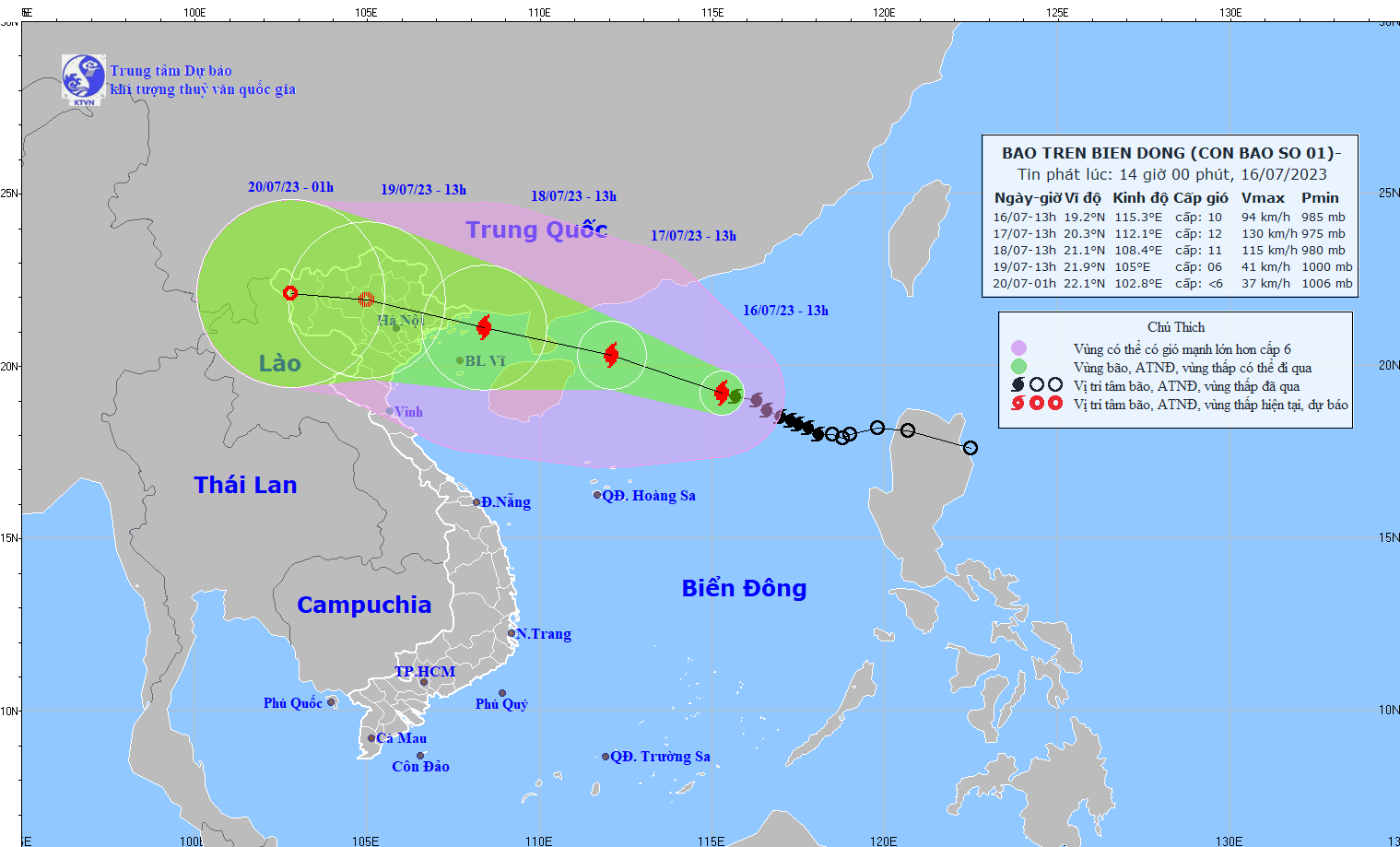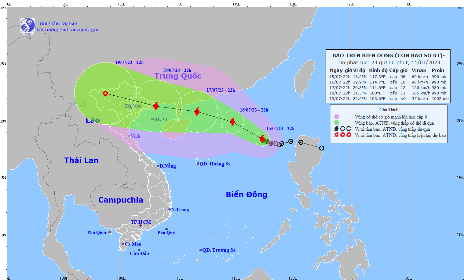 - The National Steering Committee for Disaster Prevention has issued 02 public notices (No. 05/CD-QG on July 15, 2023; No. 04/CD-QG on July 14, 2023) directing provinces, cities and other Ministries and sectors respond to storms.