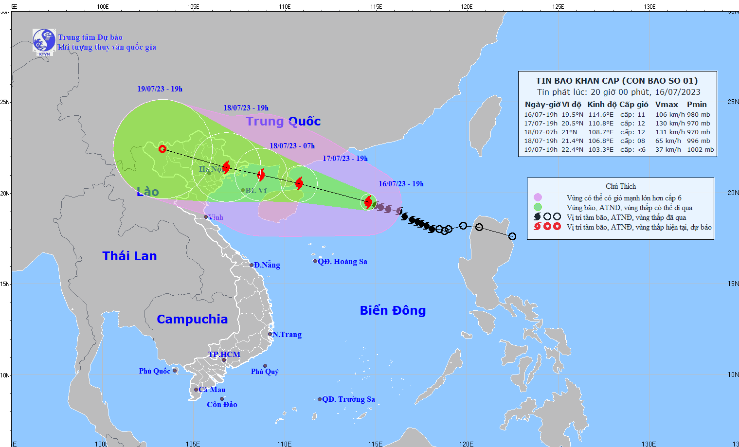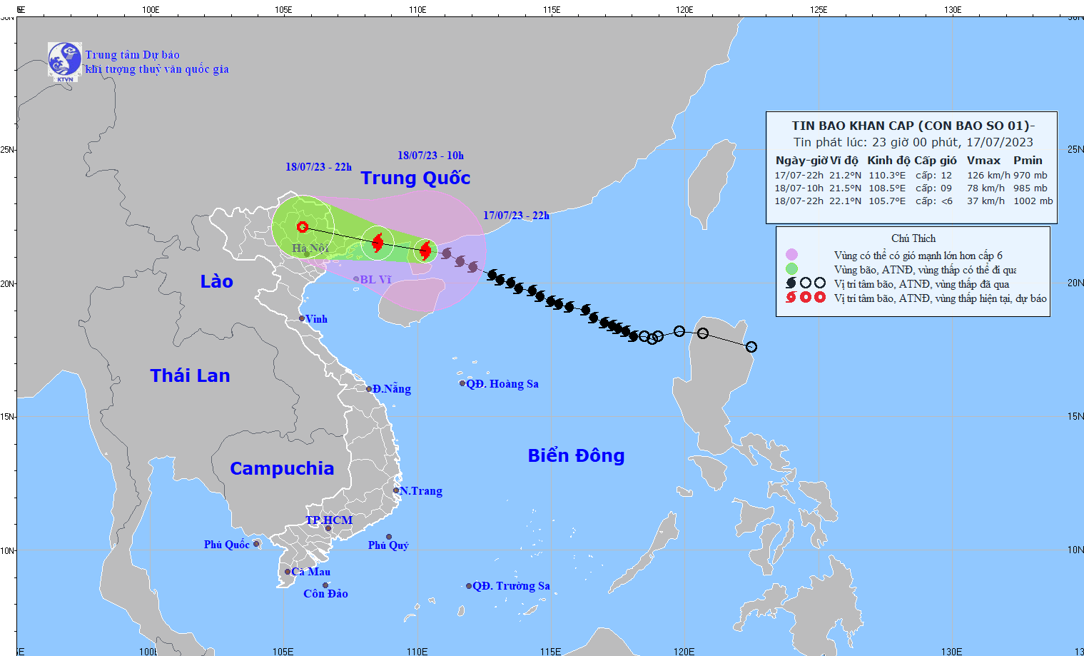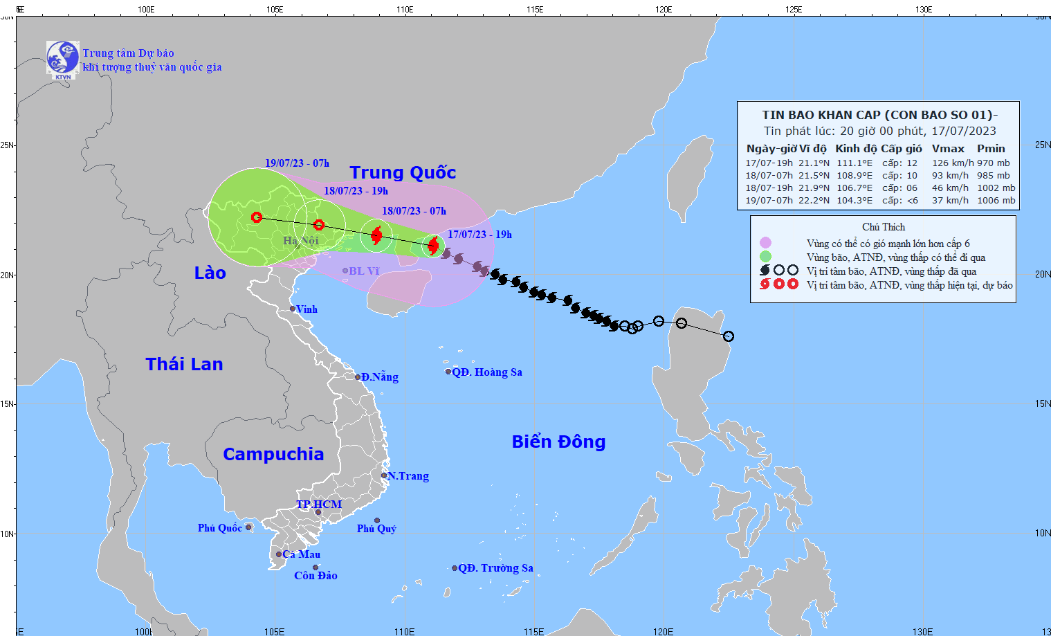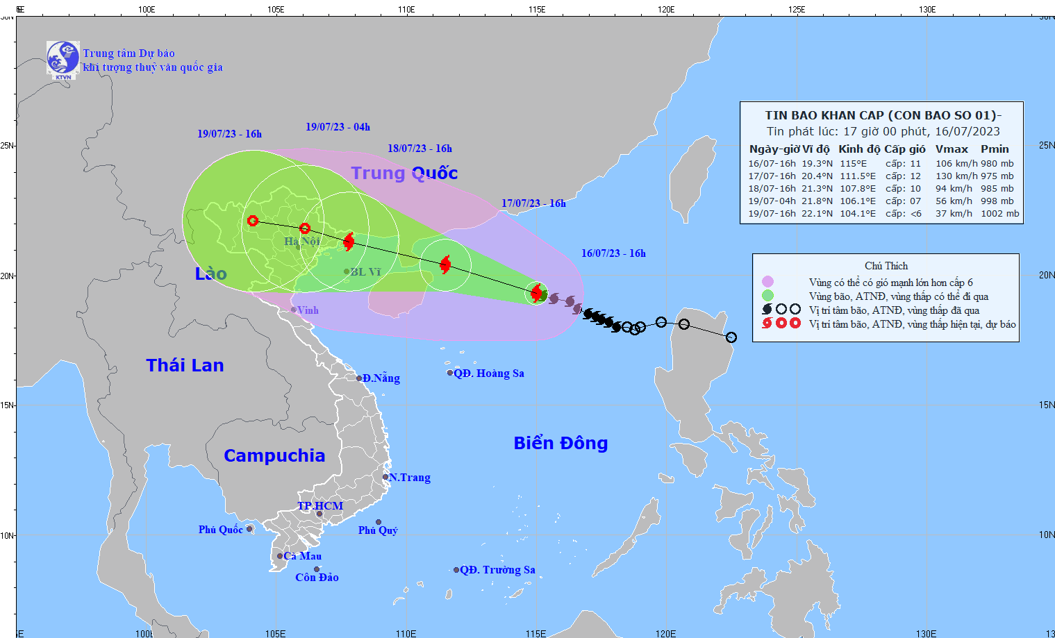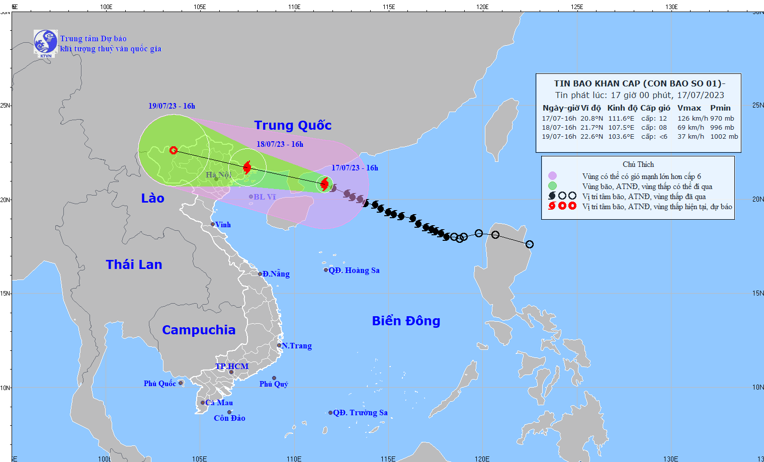 - The provinces of Quang Ninh, Thai Binh, and Nam Dinh are expected to ban the sea from 12:00 on July 17, Hai Phong is expected from 9pm on July 17. Other localities continue to monitor the storm's development to consider decisions appropriate to the actual situation.