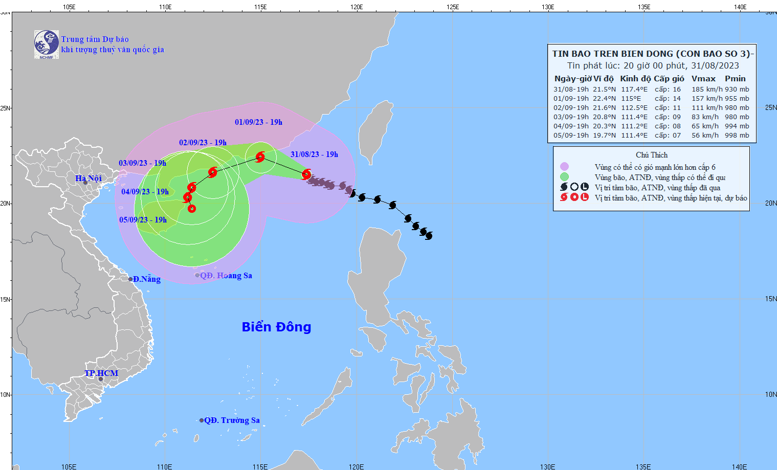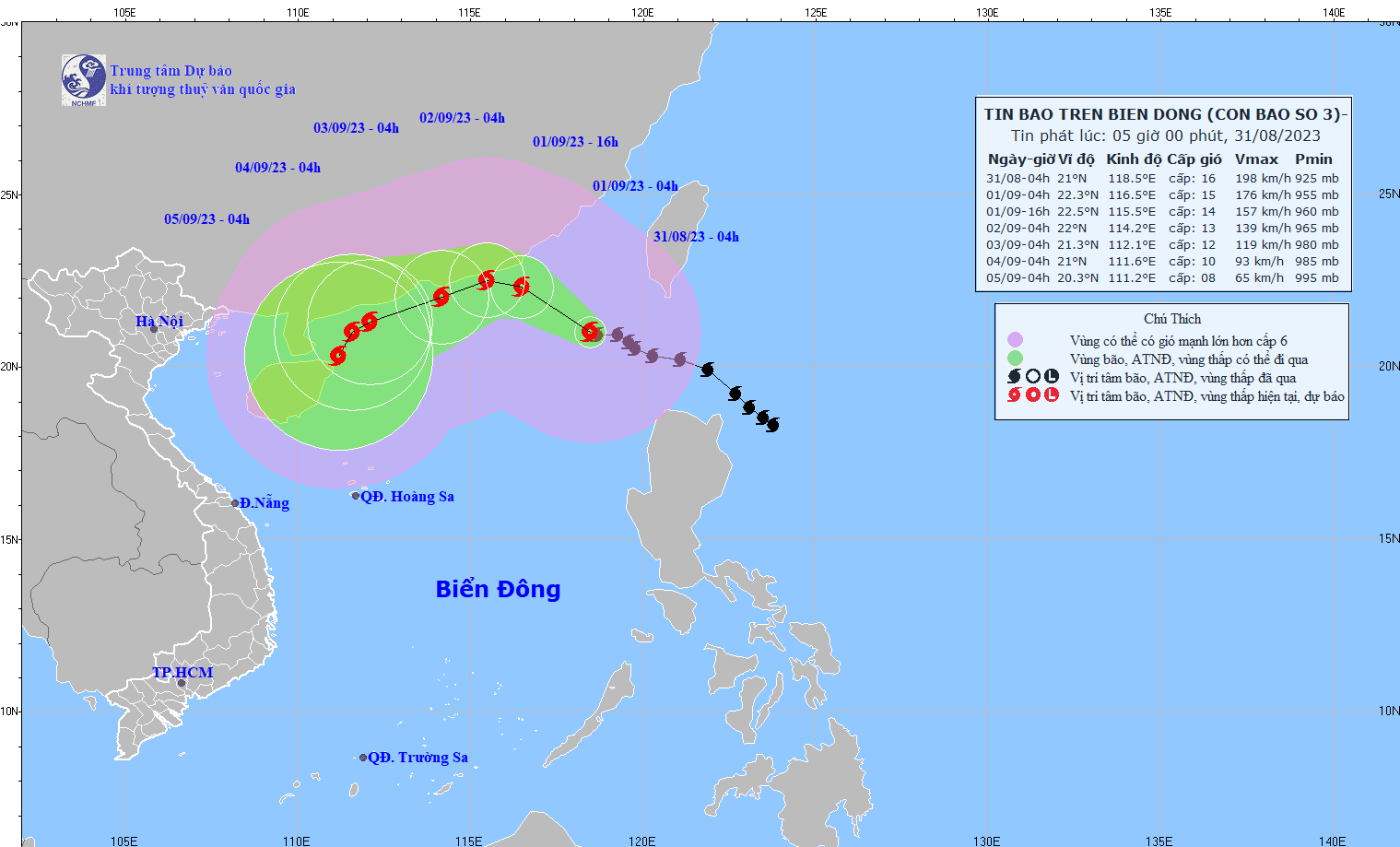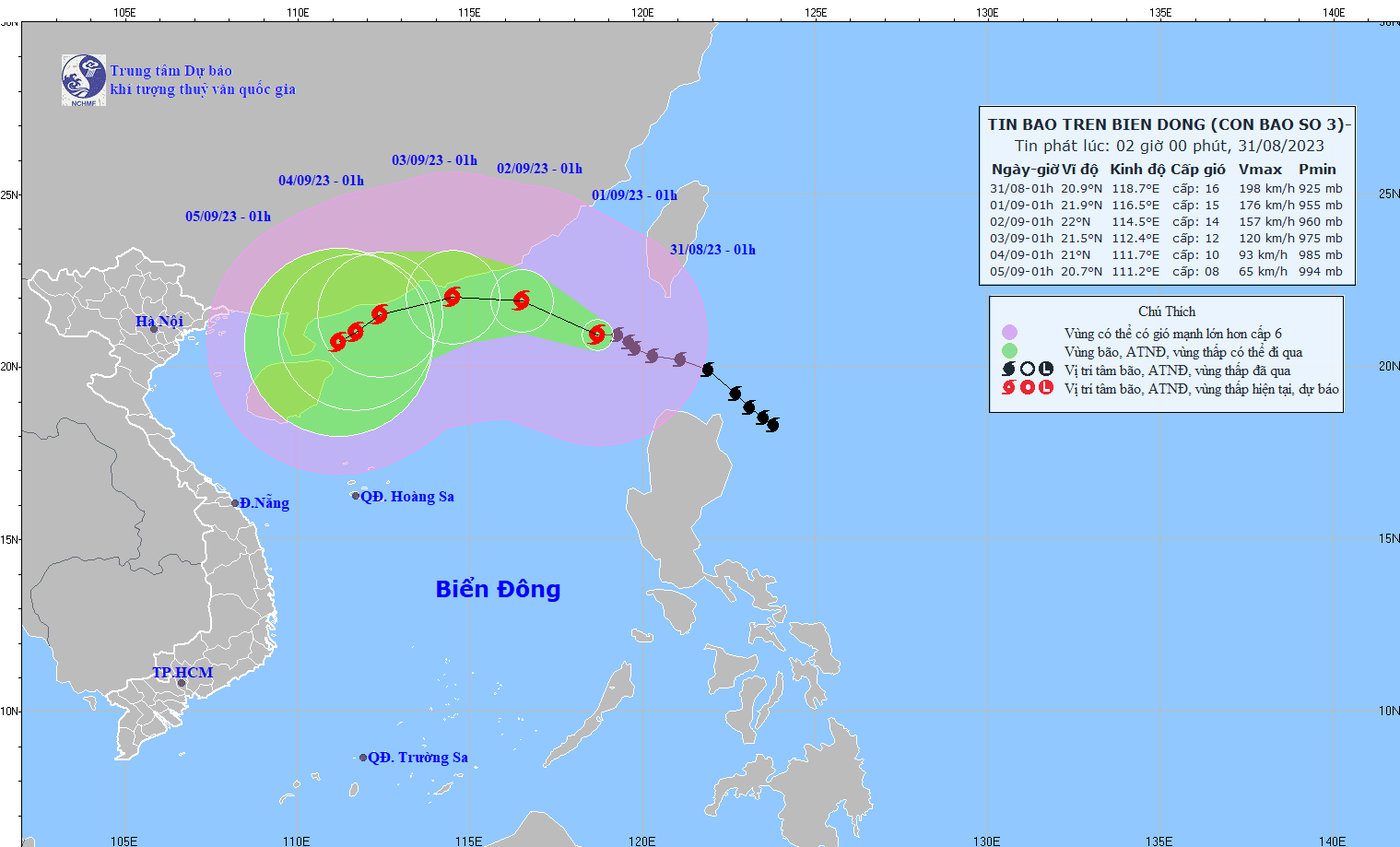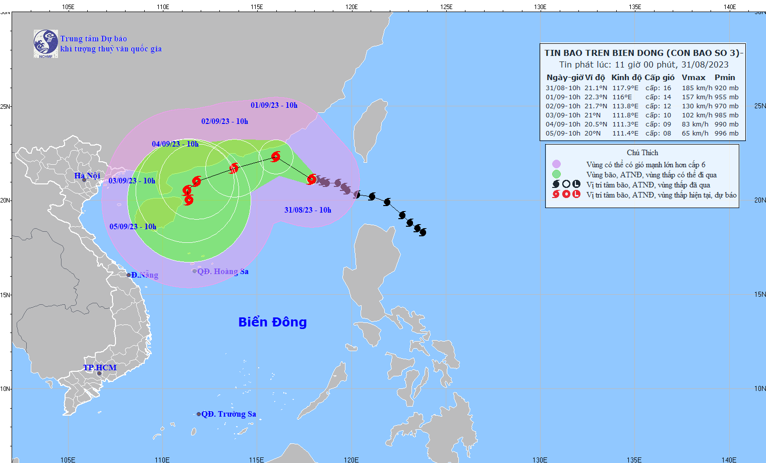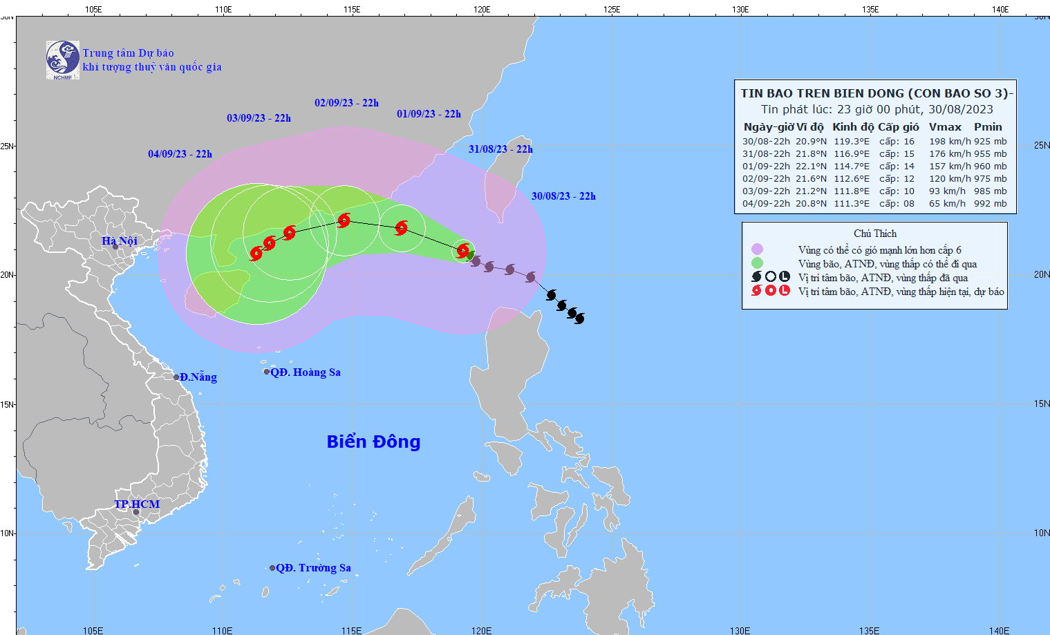 - On August 31, 2023, the National Steering Committee for Disaster Prevention and Control issued Official Dispatch No. 10/CD-QG to the Steering Committees for Disaster Prevention and Control of coastal provinces and cities from Quang Ninh to Quang Ngai and ministries, industry on proactively responding to storm No. 3 (SAOLA).