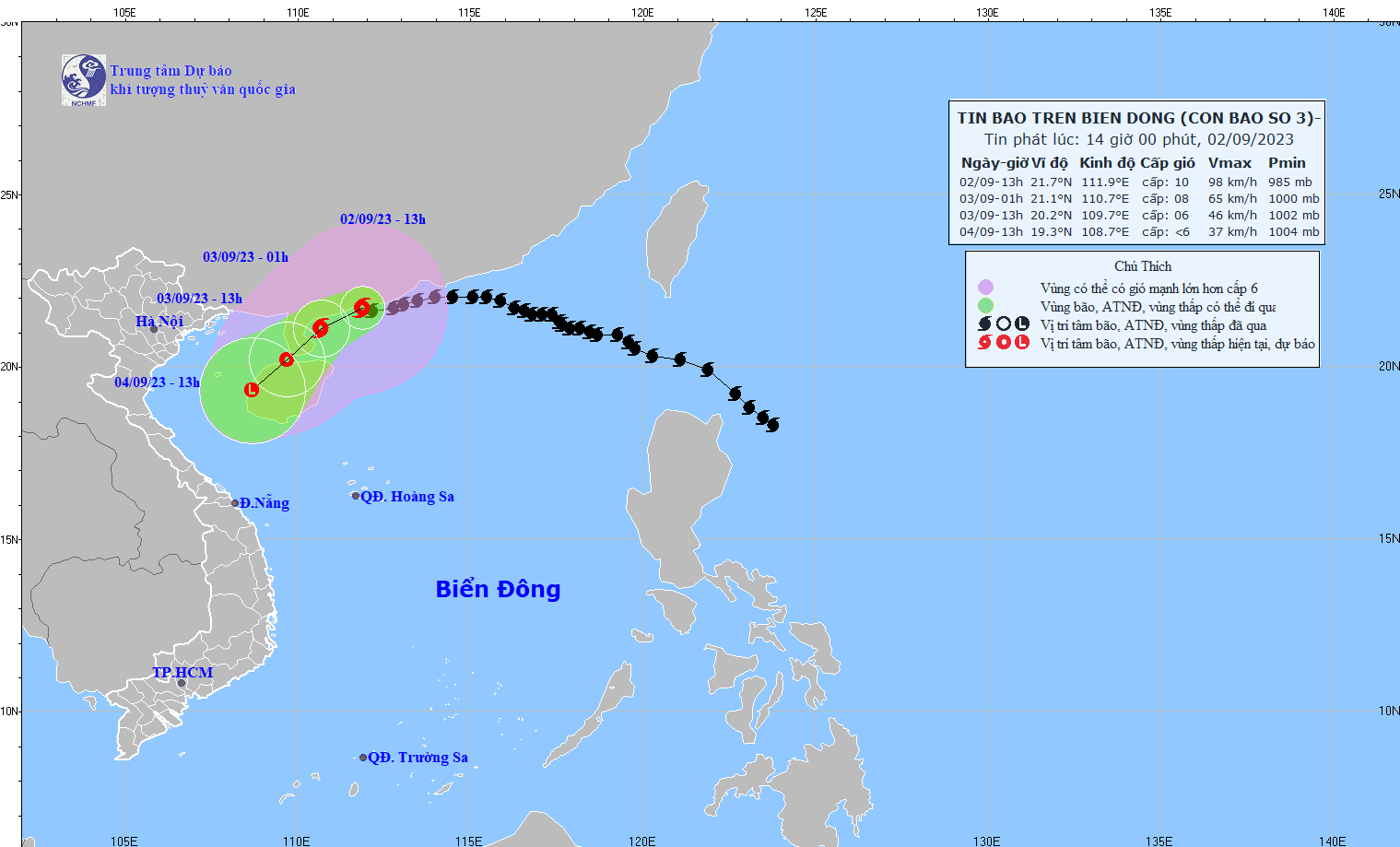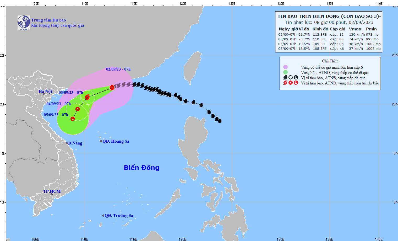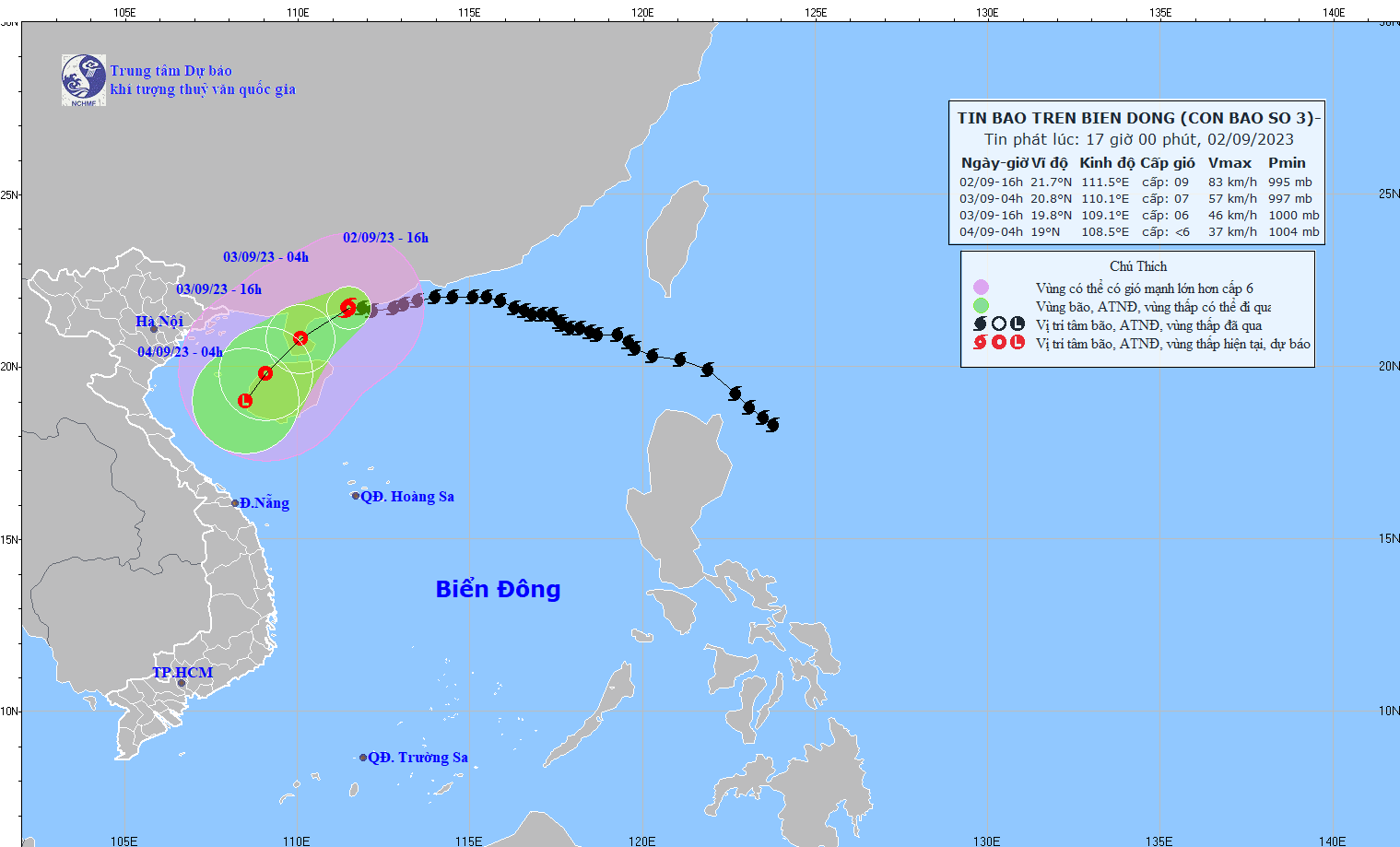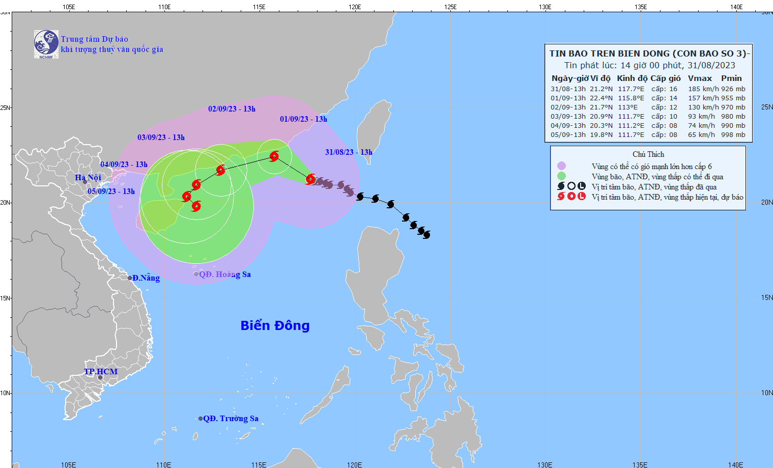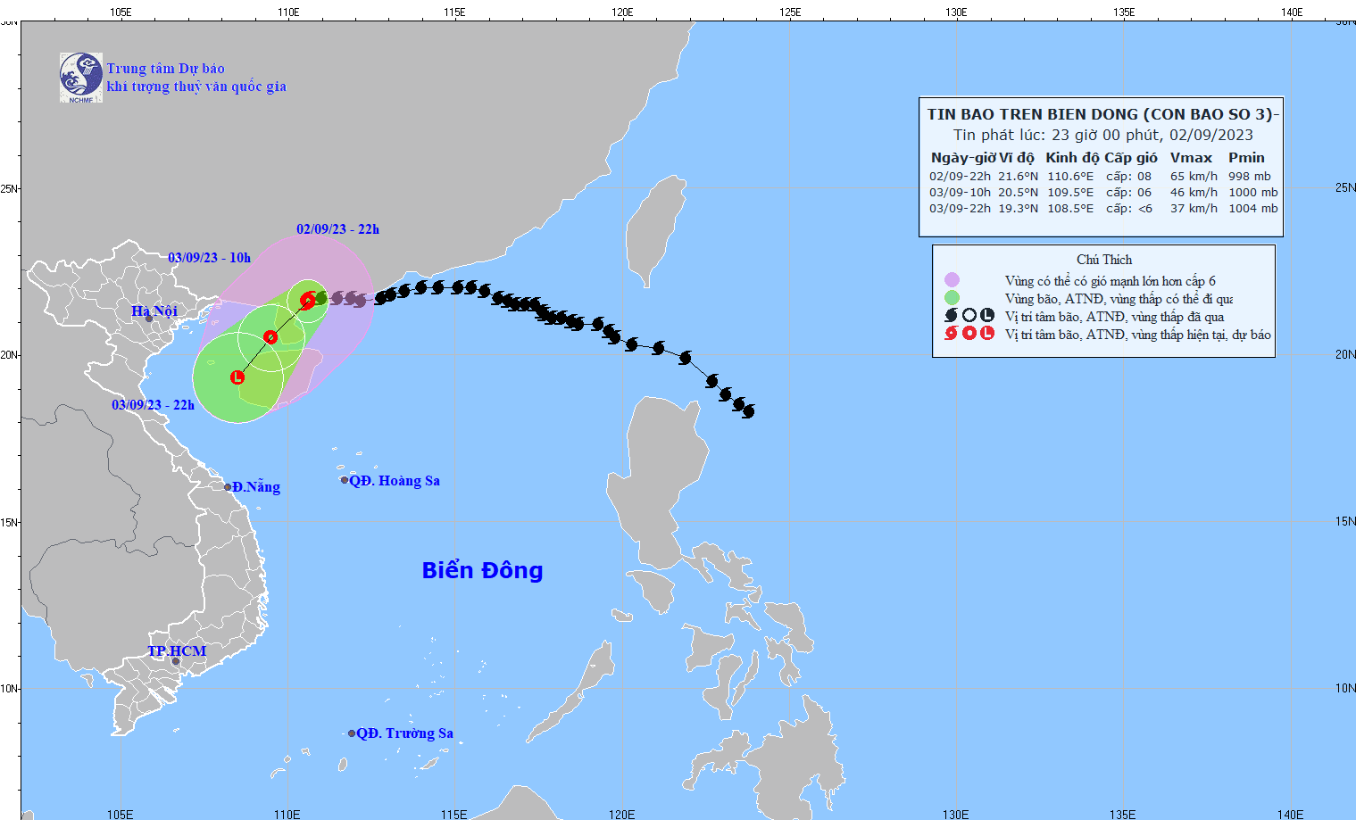 - On August 31, 2023, the National Steering Committee for Disaster Prevention and Control issued Official Dispatch No. 10/CD-QG to the Steering Committees for Disaster Prevention and Control of coastal provinces and cities from Quang Ninh to Quang Ngai and ministries, industry on proactively responding to storm No. 3 (SAOLA).