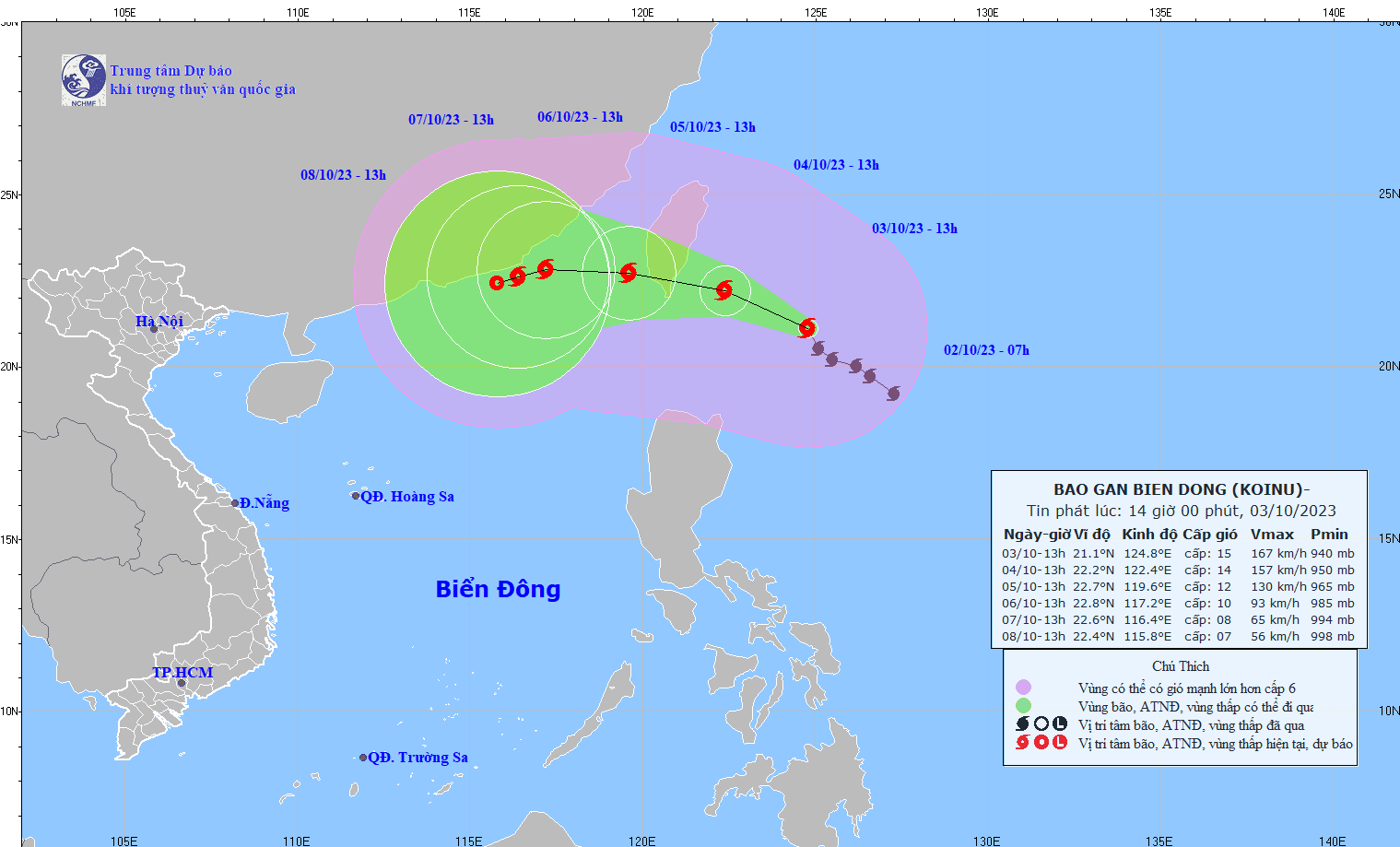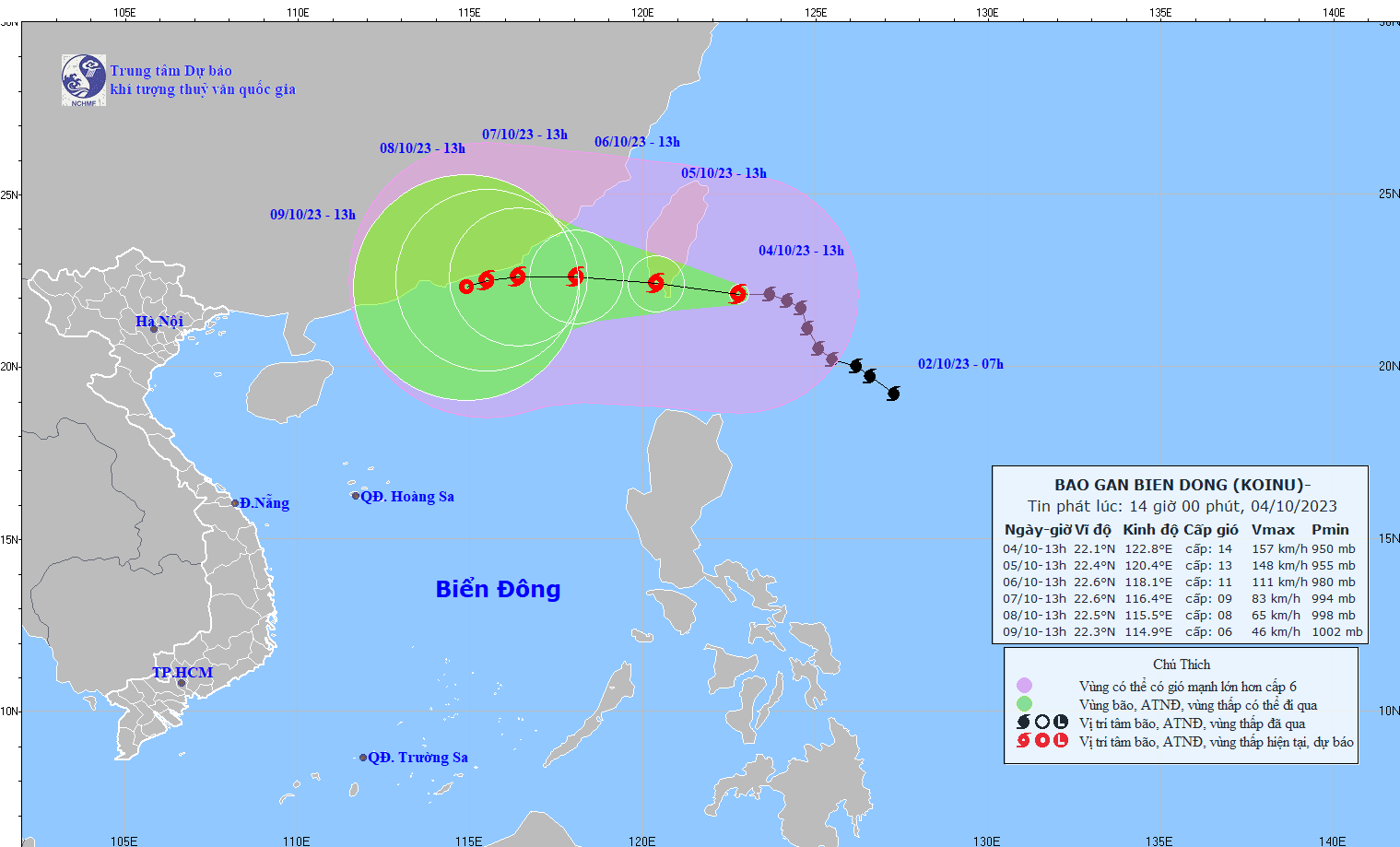 - The Standing Office of the National Steering Committee for Disaster Prevention and Control issued document No. 368/VPTT dated October 3, 2023 to the Steering Committees for Disaster Prevention and Control of coastal provinces and cities from Quang Ninh to Khanh Hoa and the Ministry of Transport. requested to proactively respond to typhoon KOINU in the northeastern sea of the Philippines.