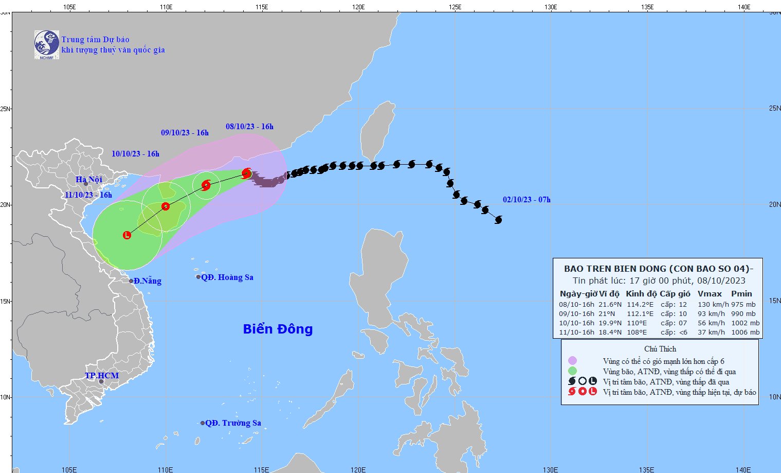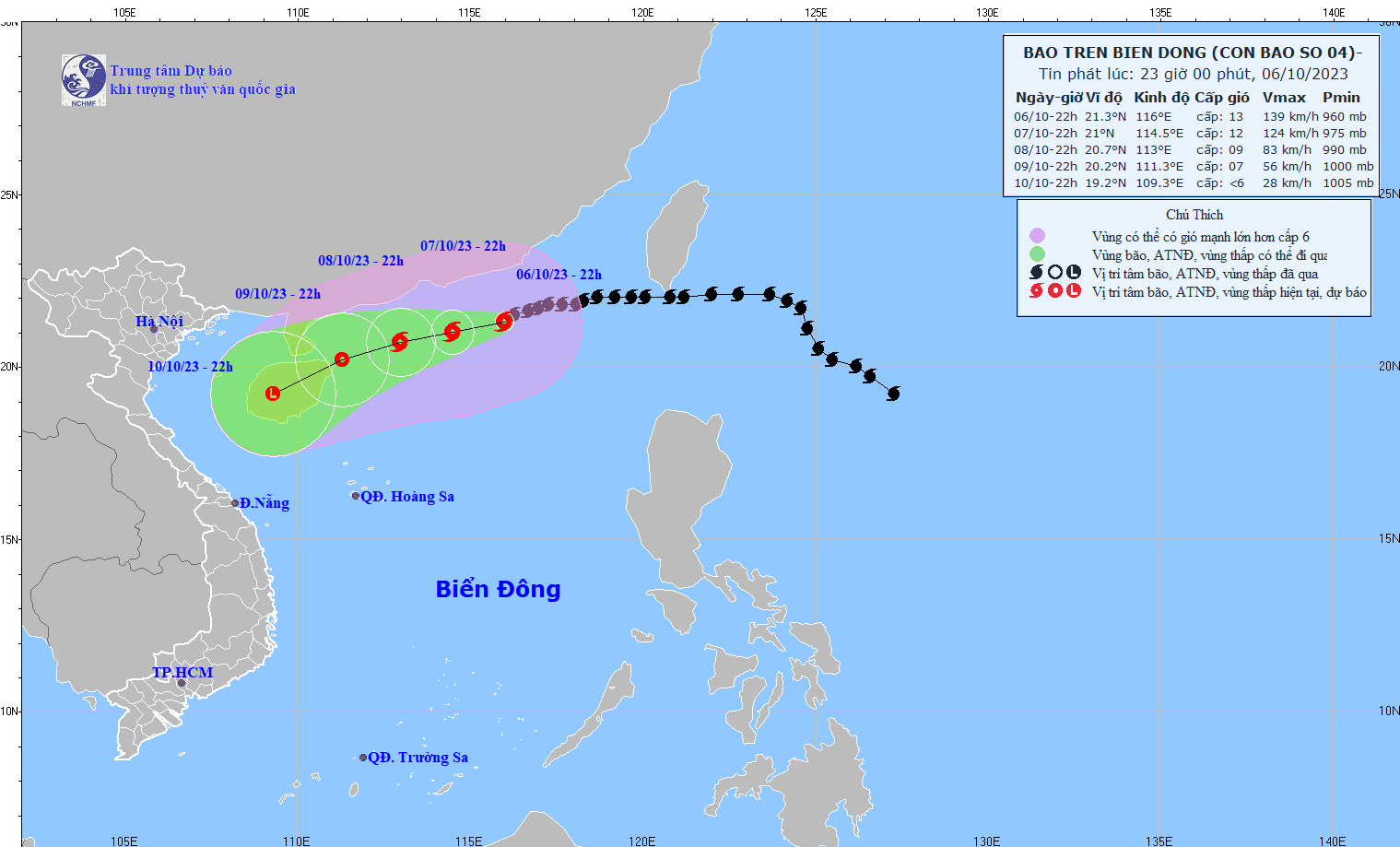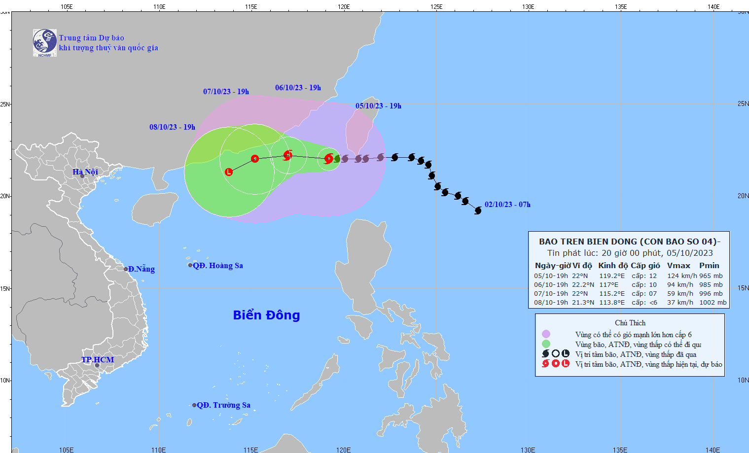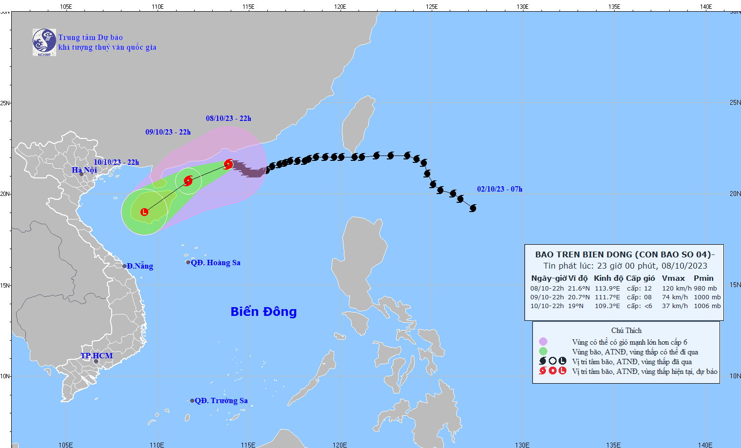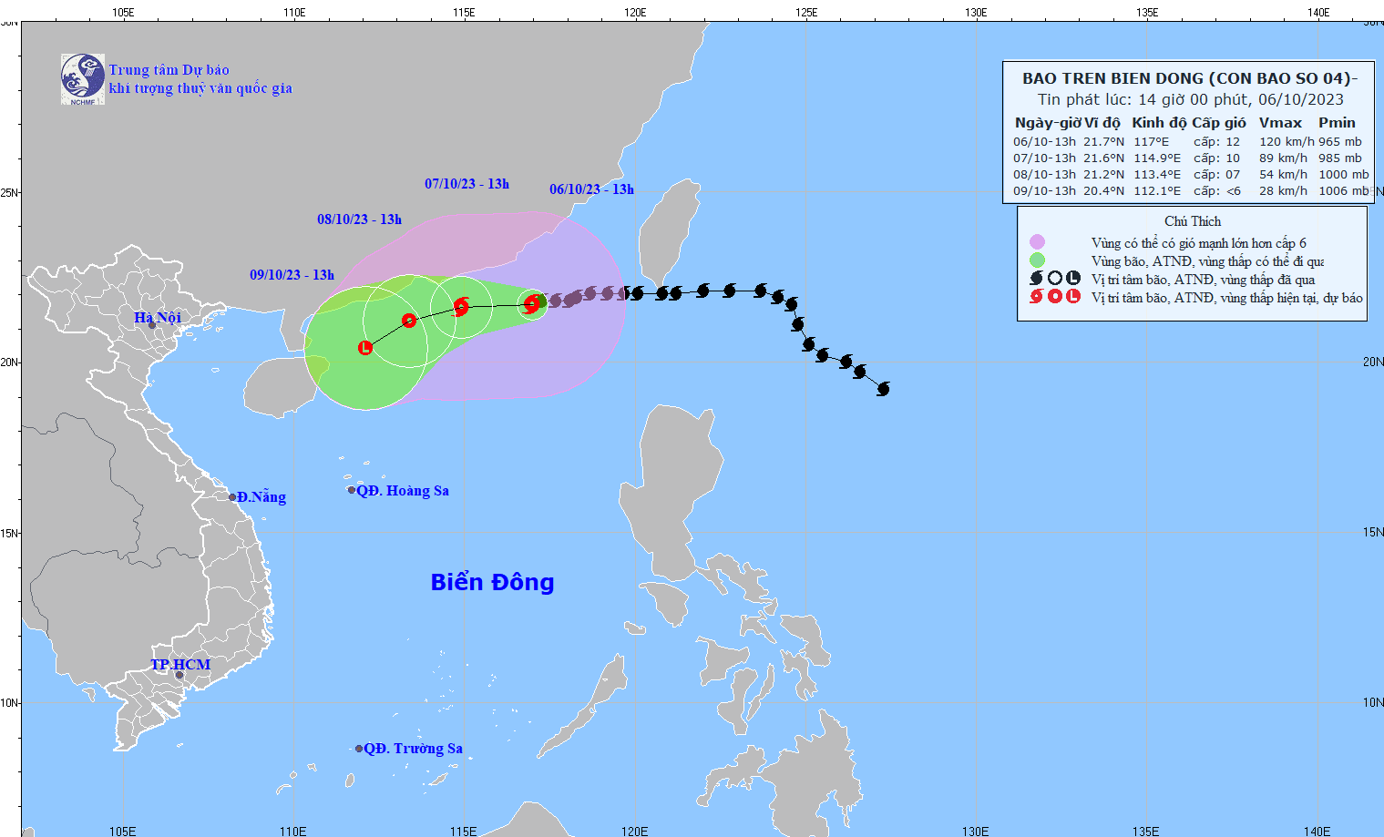- On October 5, 2023, the Standing Office of the National Steering Committee for Natural Disaster Prevention and Control - National Committee for Incident and Disaster Response and Search and Rescue issued Official Telegram No. 12/CD-QG returning 18:00 sent the Steering Committee for Disaster Prevention and Control of coastal provinces and cities from Quang Ninh to Khanh Hoa about proactively responding to storm No. 4.