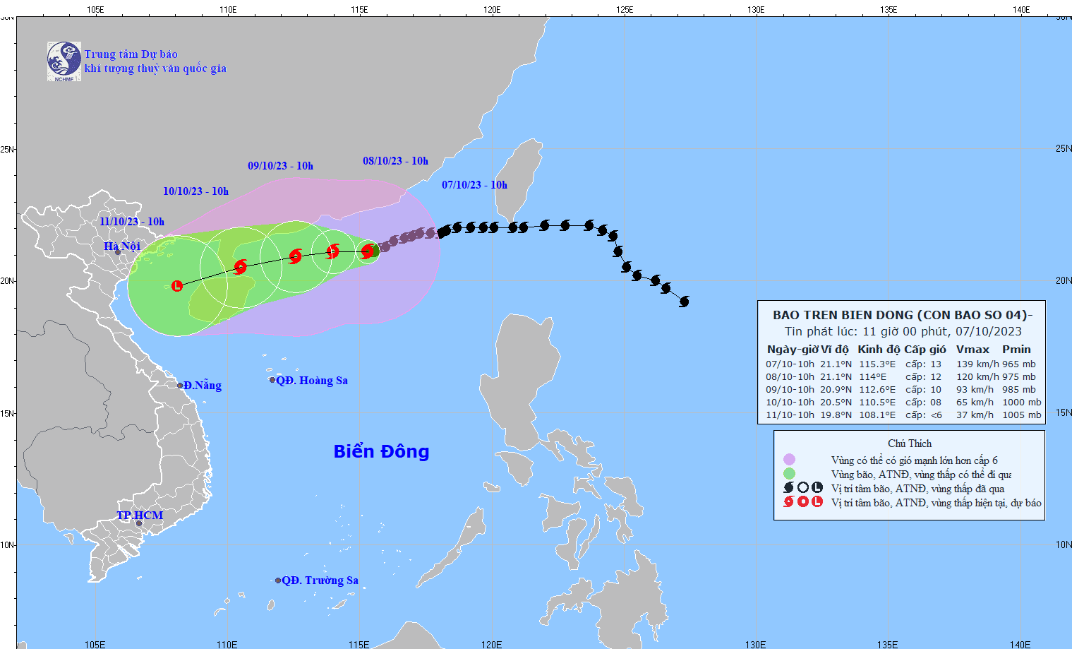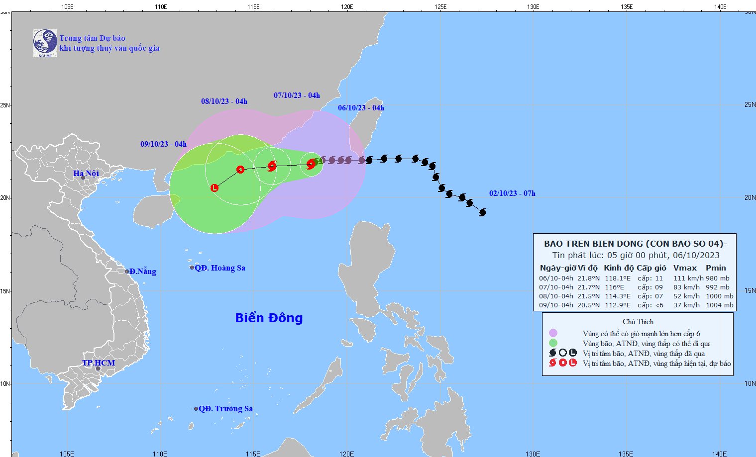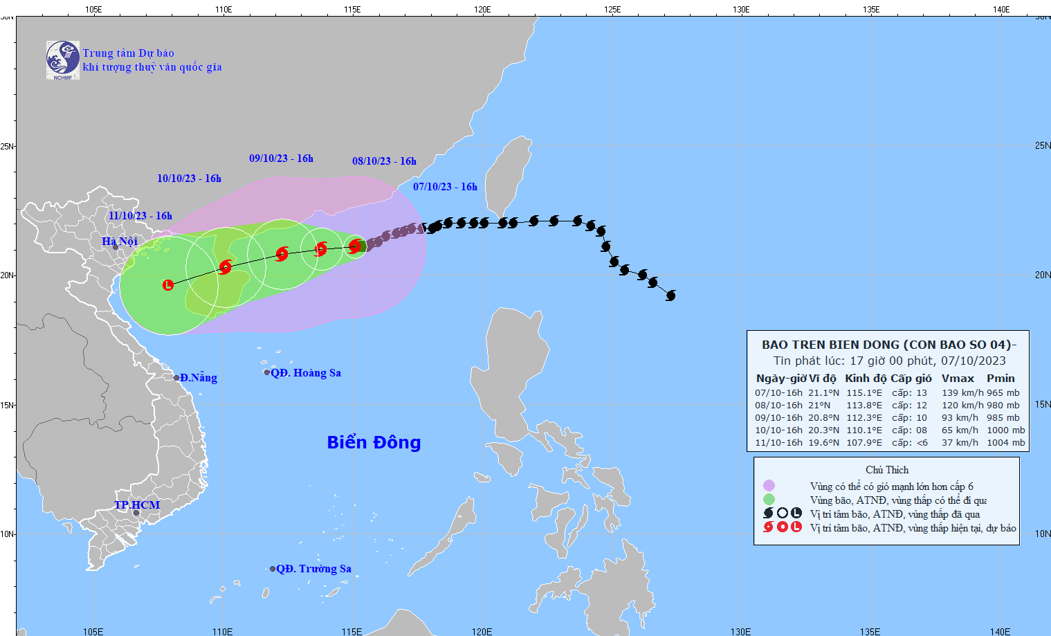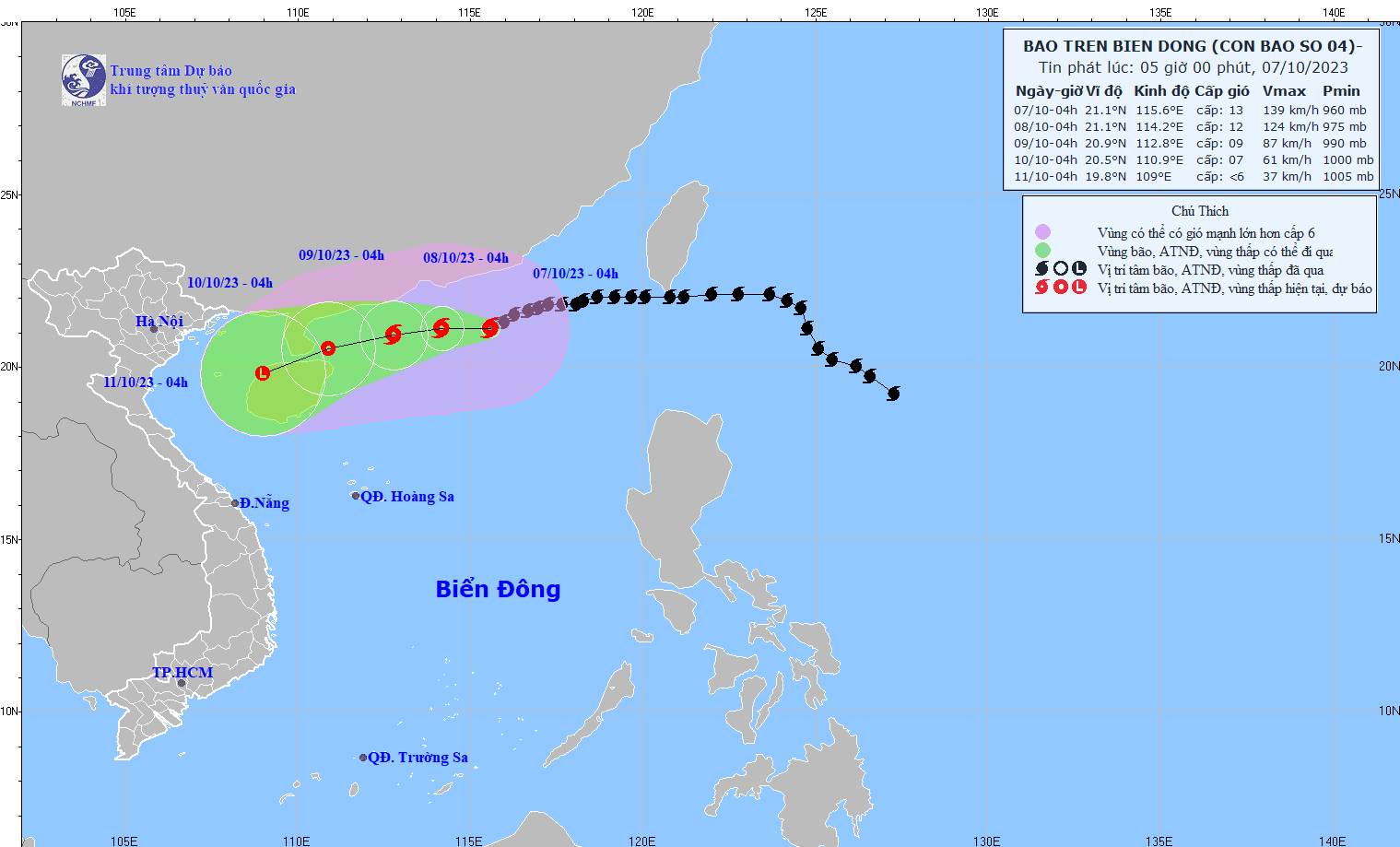 - On October 5, 2023, the Standing Office of the National Steering Committee for Natural Disaster Prevention and Control - National Committee for Incident and Disaster Response and Search and Rescue issued Official Telegram No. 12/CD-QG returning 18:00 sent the Steering Committee for Disaster Prevention and Control of coastal provinces and cities from Quang Ninh to Khanh Hoa about proactively responding to storm No. 4.