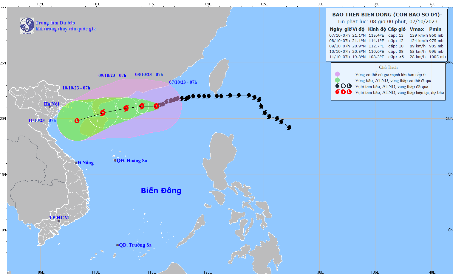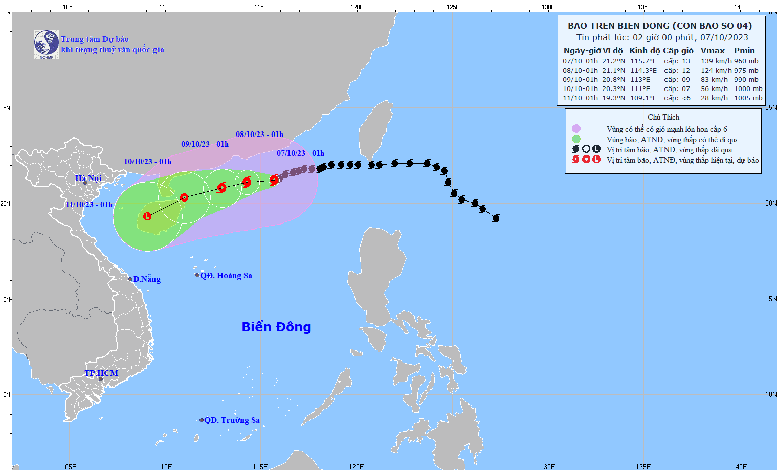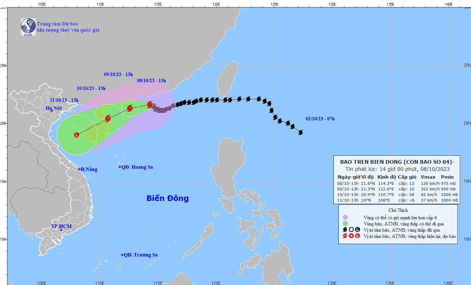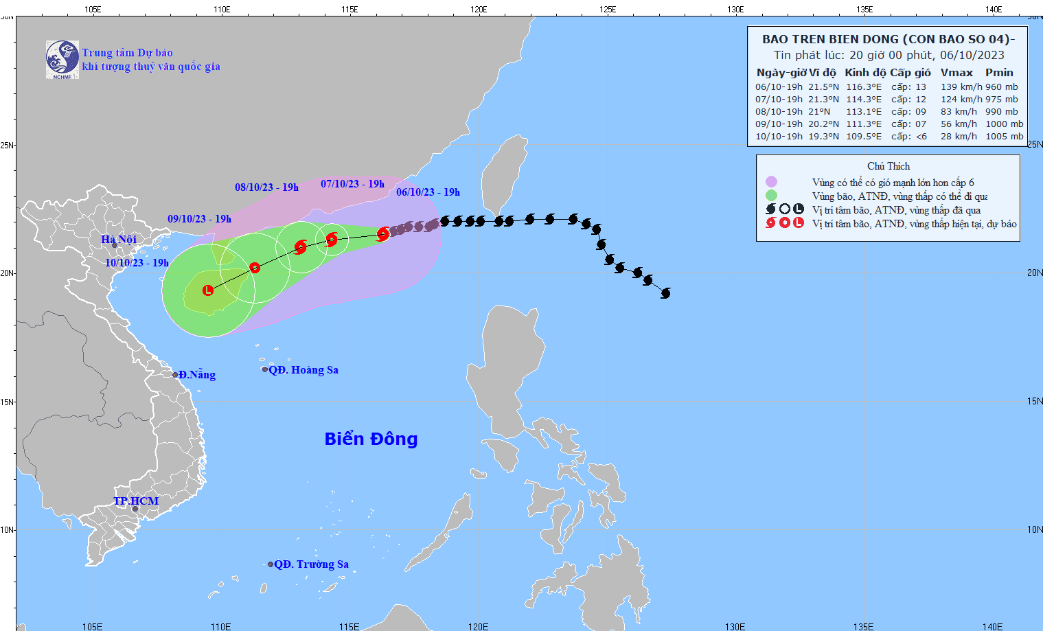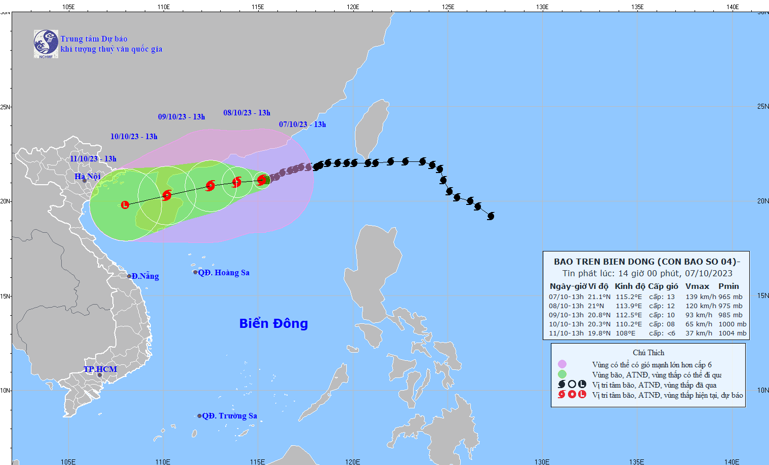 - On October 5, 2023, the Standing Office of the National Steering Committee for Natural Disaster Prevention and Control - National Committee for Incident and Disaster Response and Search and Rescue issued Official Telegram No. 12/CD-QG returning 18:00 sent the Steering Committee for Disaster Prevention and Control of coastal provinces and cities from Quang Ninh to Khanh Hoa about proactively responding to storm No. 4.