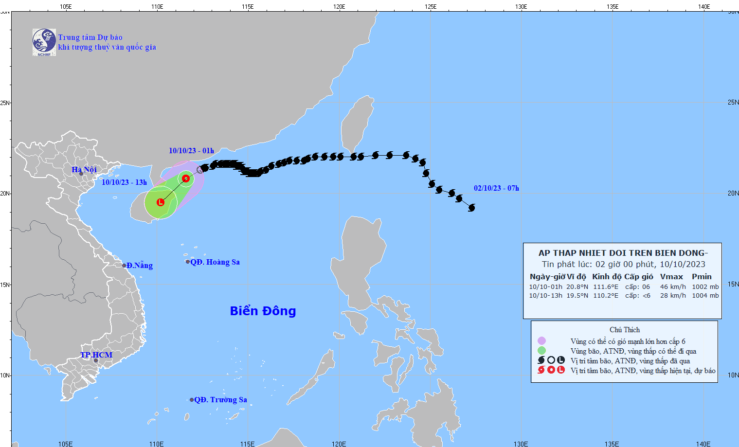 - Early this morning (October 10), the tropical depression (weakened from storm No. 4) weakened into a low pressure area over Hainan Island (China).