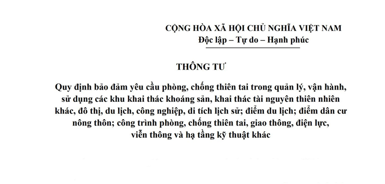 Consolidation of Circular No. 13/2021/TT-BNNPTNT on Natural Disaster Prevention and Control Requirements