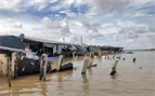 In Ca Mau province, four riverside houses in Nam Can district have just collapsed into the river, causing damage of over 140 million VND. Fortunately, no human damage.
